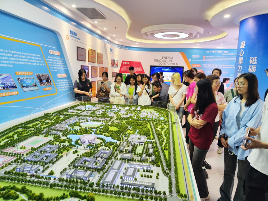 在广西现代物流集团规划展示馆,通过讲解员的介绍和集团宣传片,同学们了解了集团的发展历程、组织架构和色中色,对其在物流、环保、机电、职业教育等多领域的实力与影响力有了直观认识。