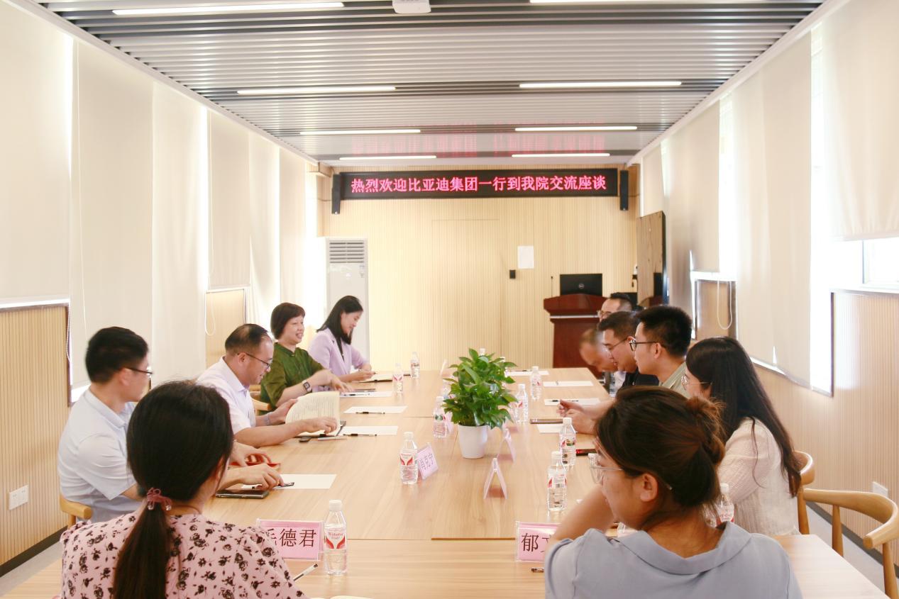 座谈会上,校企双方紧扣人才培养和企业需求、产教融合协同育人、产学研合作、学生实习实训、毕业生就业岗位拓展等方面展开了务实交流。座谈会前,比亚迪集团代表一行参观了学院研究生教学教室和基础设施。