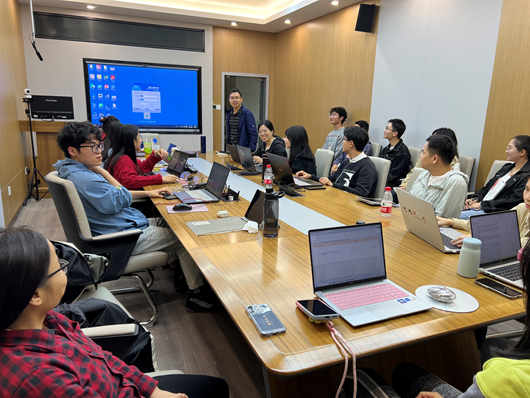 232研讨室讨论声此起彼伏,现场气氛热烈,学院副教授、博士生导师梁世昌如往常的一样,每周组织“敏兰轩”课题组成员进行学术交流讨论。学院助理教授耿利肖老师以及梁世昌老师的研究生、本科生26名师生参加此次交流会。