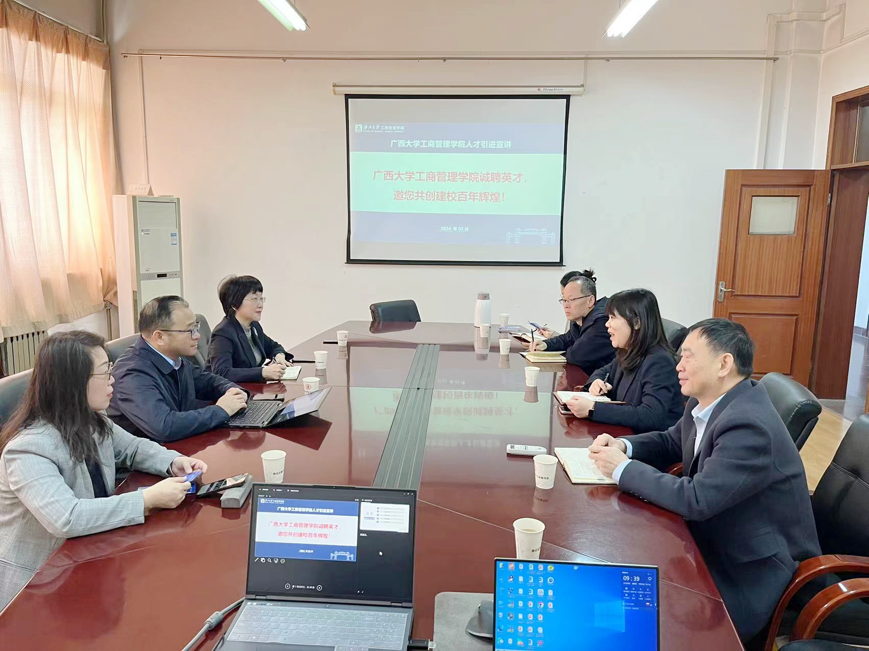 3月中旬至4月初,罗诚书记带队前往西安交通大学、西北工业大学,朱帮助院长带队前往吉林大学、哈尔滨工业大学、东北师范大学、四川大学、西南交通大学、西南财经大学、电子科技大学、重庆大学、中山大学、暨南大学、厦门大学的经管类学院进行调研学习,并开展面向博士毕业生和博士后的人才招聘宣讲。活动中,廖东红副院长从区位优势、学校介绍、学院介绍、政策解读和校园环境等五个方面介绍学校、学院的相关人才政策,进行面对面交流,提供现场咨询。在拜访各高校间隙,院领导还带队参加了在长春、成都、西安和广州等地举办的四场全国高校博士生招聘专场,通过布置宣传海报、发放人才招聘宣传彩页、开展人才政策专场宣讲会等多种举措,全方位、多角度地宣传自治区、学校和学院的人才政策,展现了学校、学院海纳百川、包容开放的人才引育生态,树立了锐意进取的发展形象。
