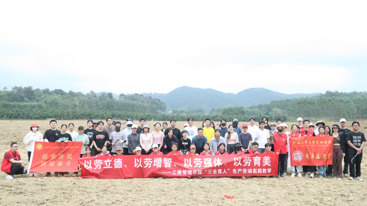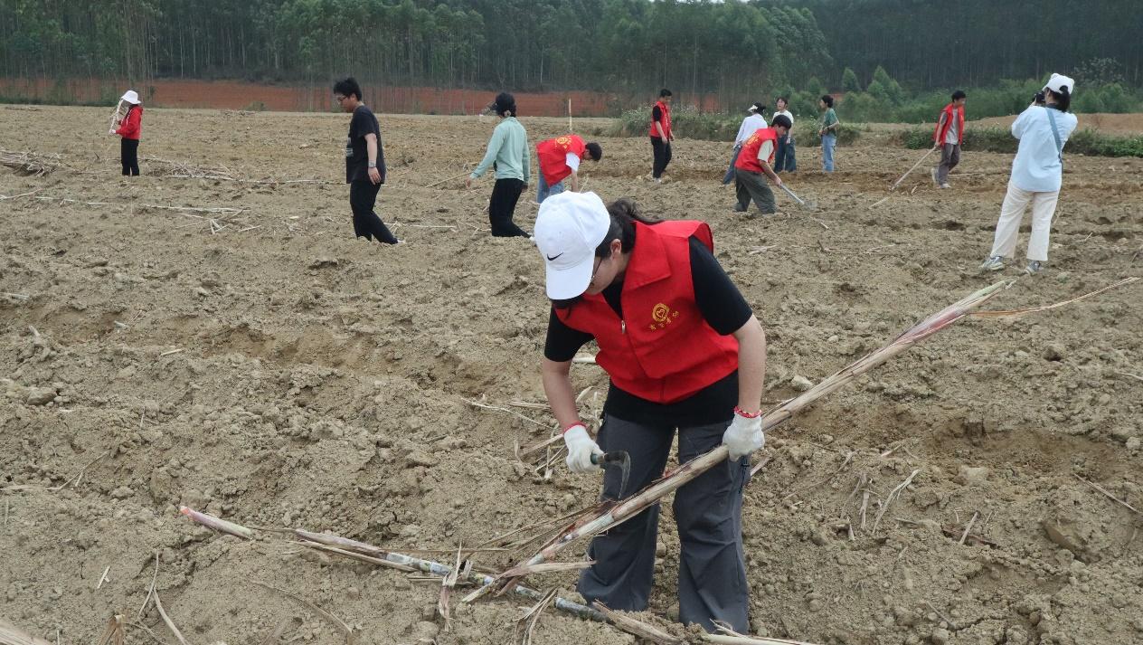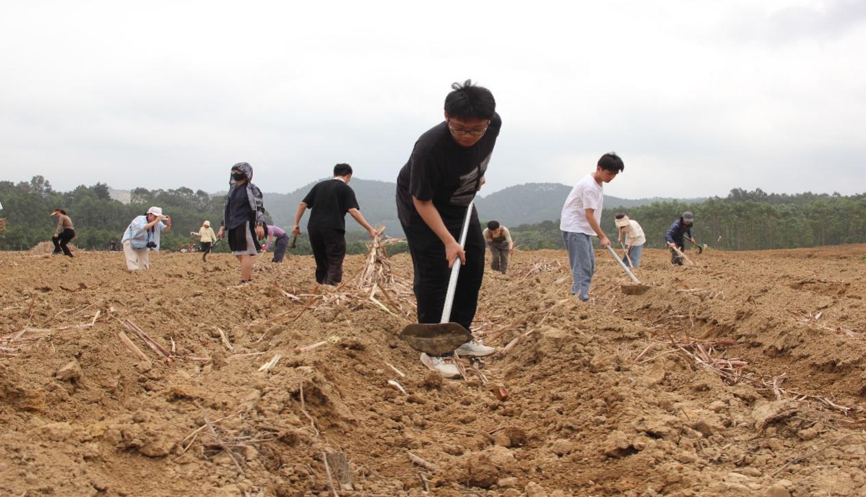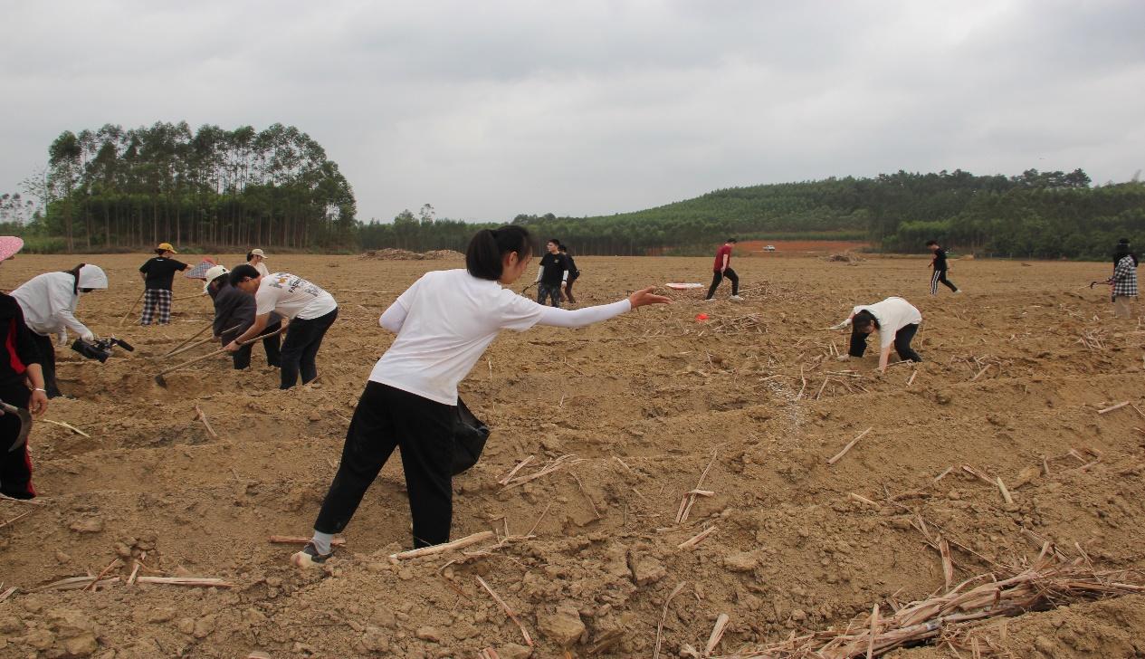 的师生们追随习近平总书记视察广西发展特色产业的指示精神,来到南宁市武鸣区罗波镇暮定村,与村民一道抢抓春耕时节,播种甘蔗,进行甘蔗种植产业调研,开展了一场生动的“以劳立德、以劳增智、以劳强体、以劳育美”劳动教育实践活动。