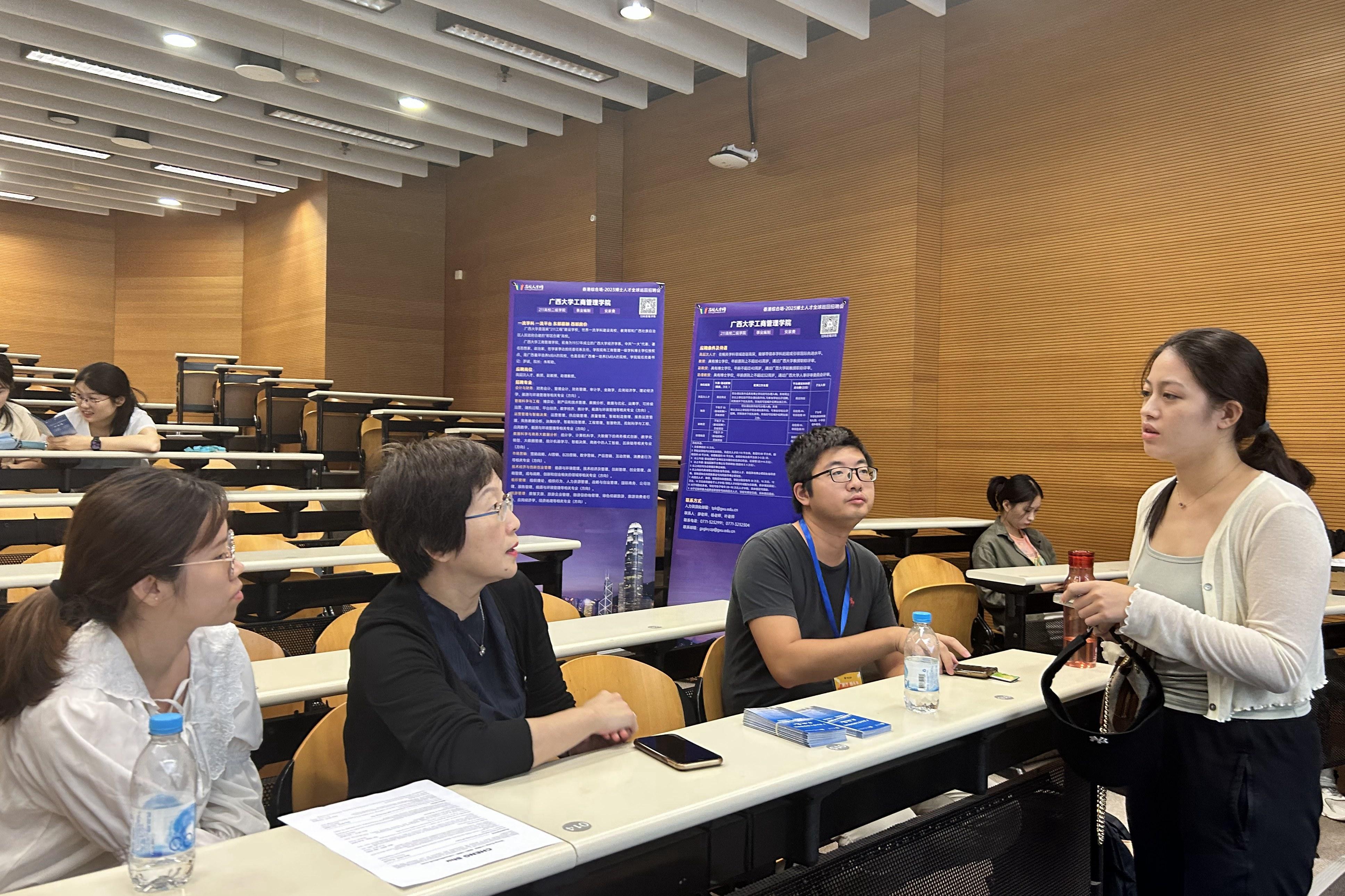 人才队伍,提升学术水平和社会影响力,10月17日至20日,学院副院长廖东红率专任教师何心巨、戴秋慧前往香港参加高校人才网2023博士人才全球巡回招聘会(香港站),先后到香港大学、香港中文大学、香港科技大学、香港理工大学、香港浸会大学等五所知名高校进行了参访交流。