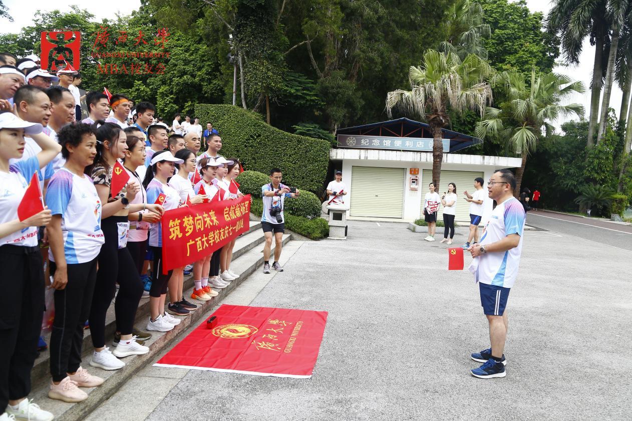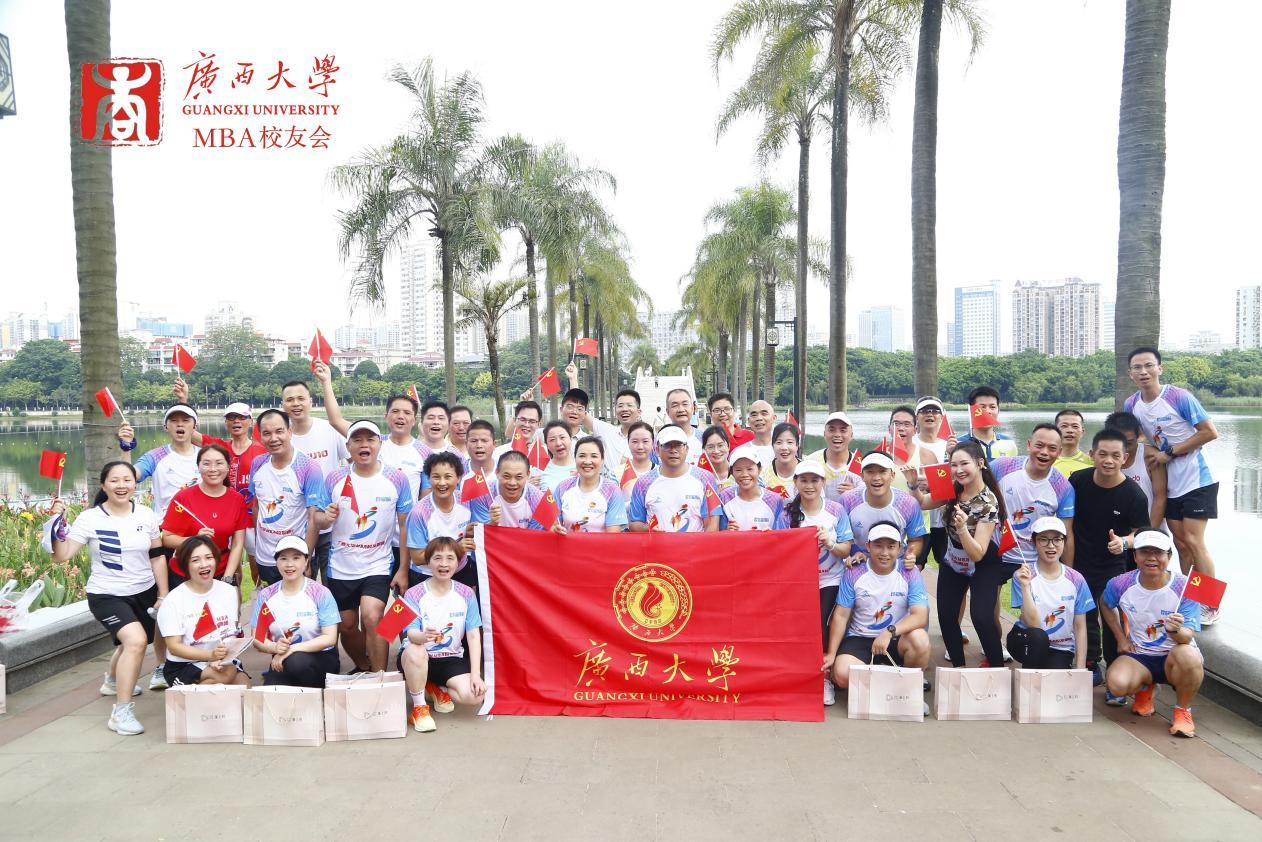 在中国共产党成立102周年之际,7月1日上午,学院党委书记罗诚与学院MBA、EMBA校友一起,在南宁市南湖公园参加了由色中色
