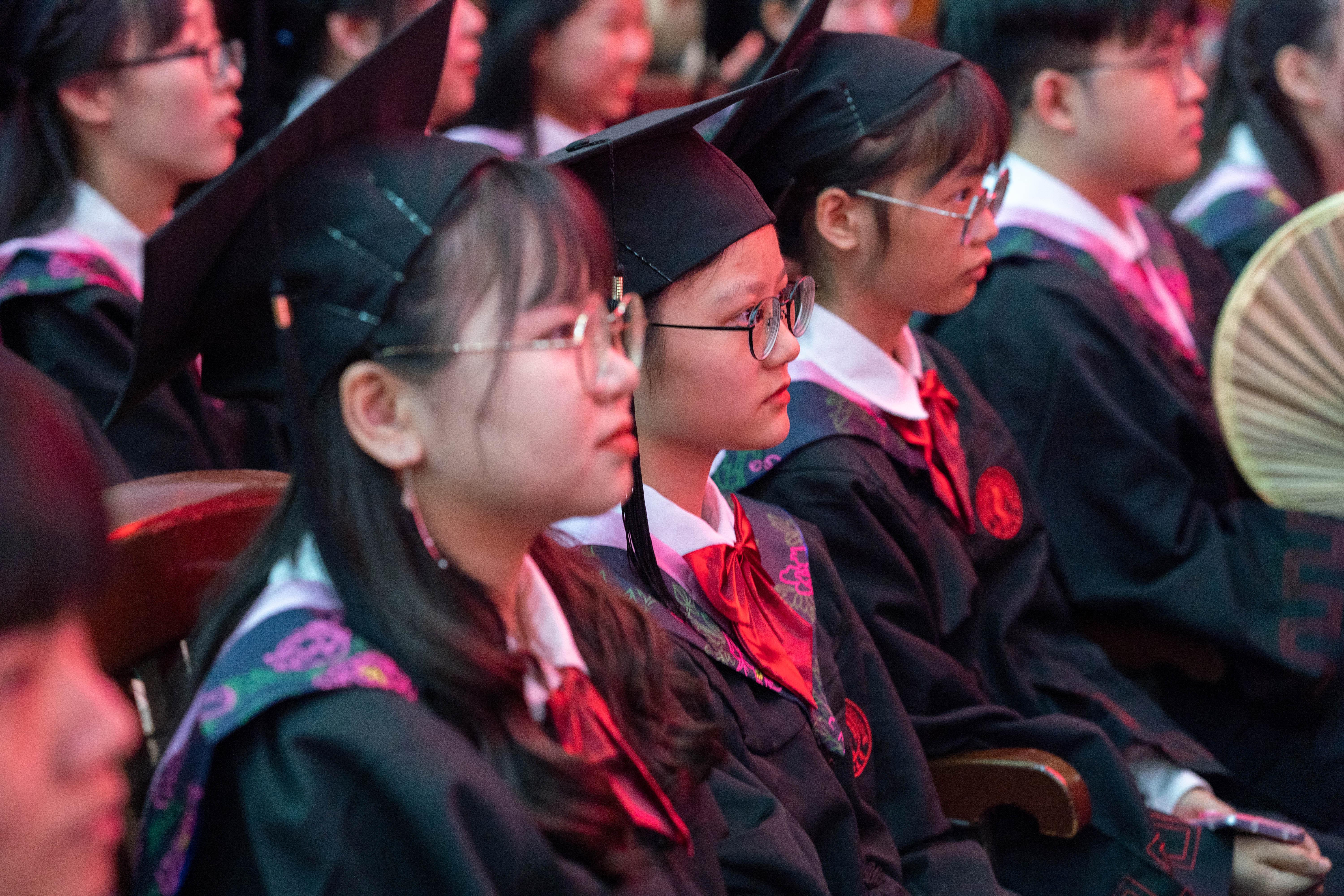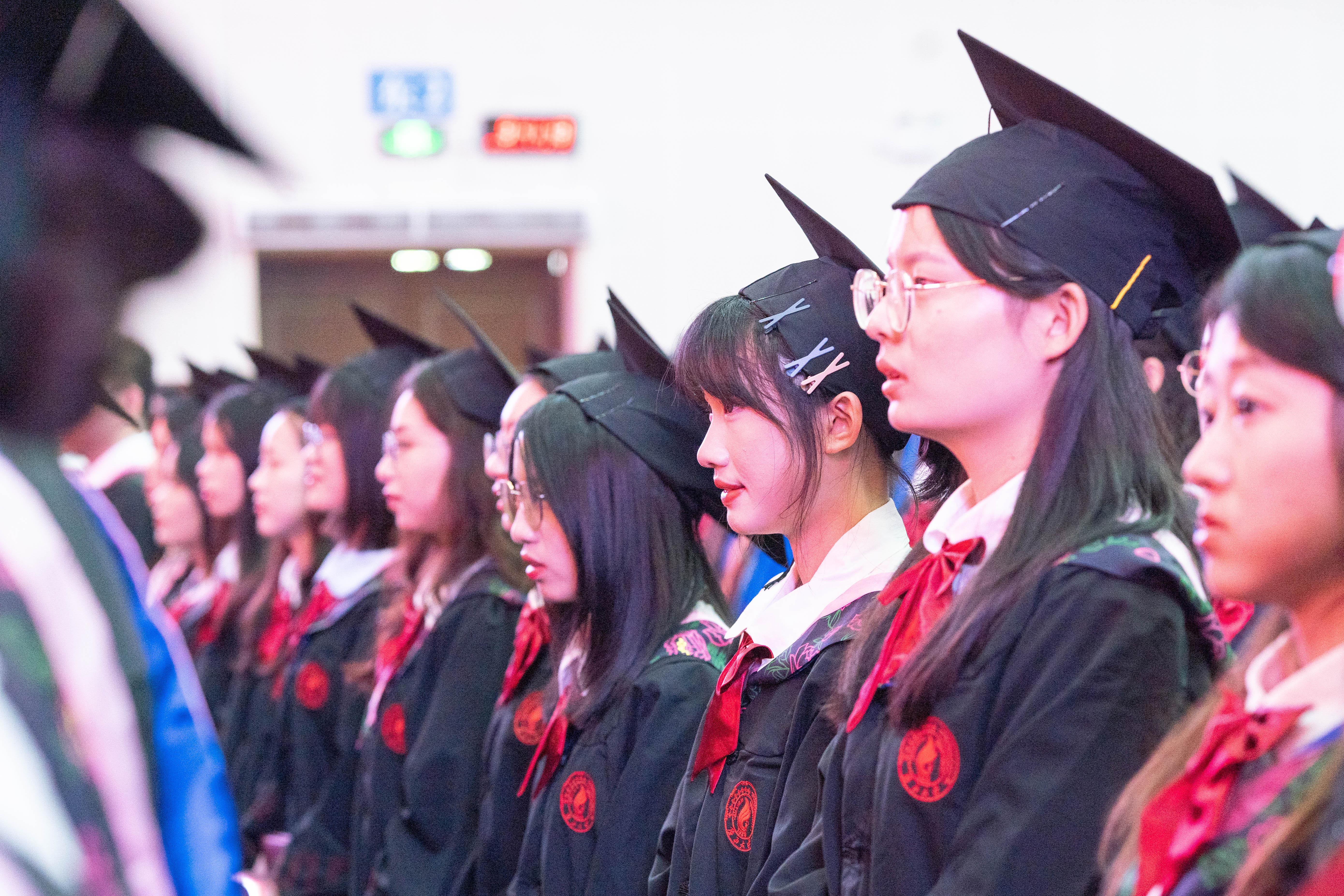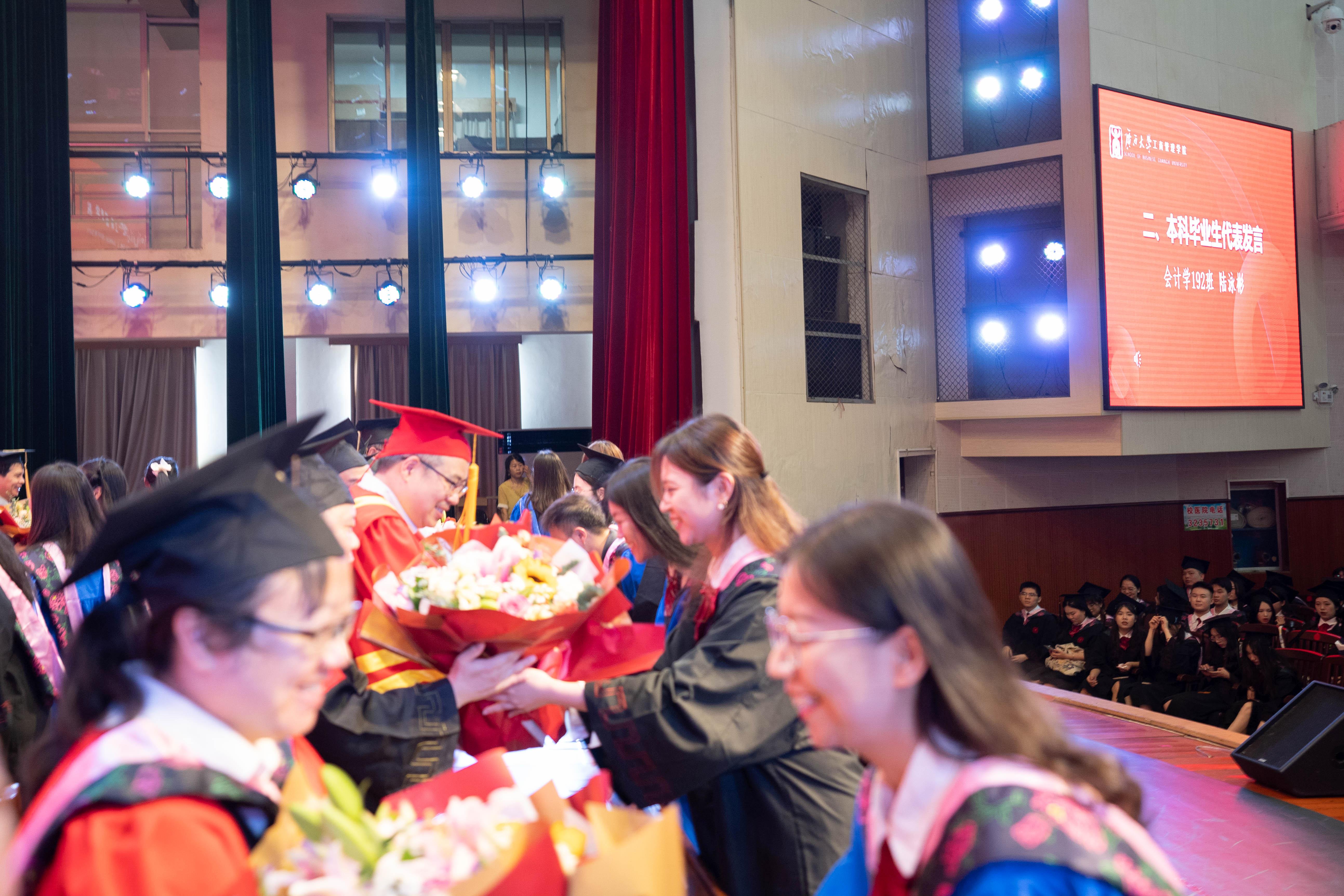 “辛勤耕耘桃李艳,花开回报育花人。”毕业生代表手捧鲜花,向敬爱的老师们鞠躬致谢,感恩老师和母校的栽培。在嘹亮的校歌声中,色中色
