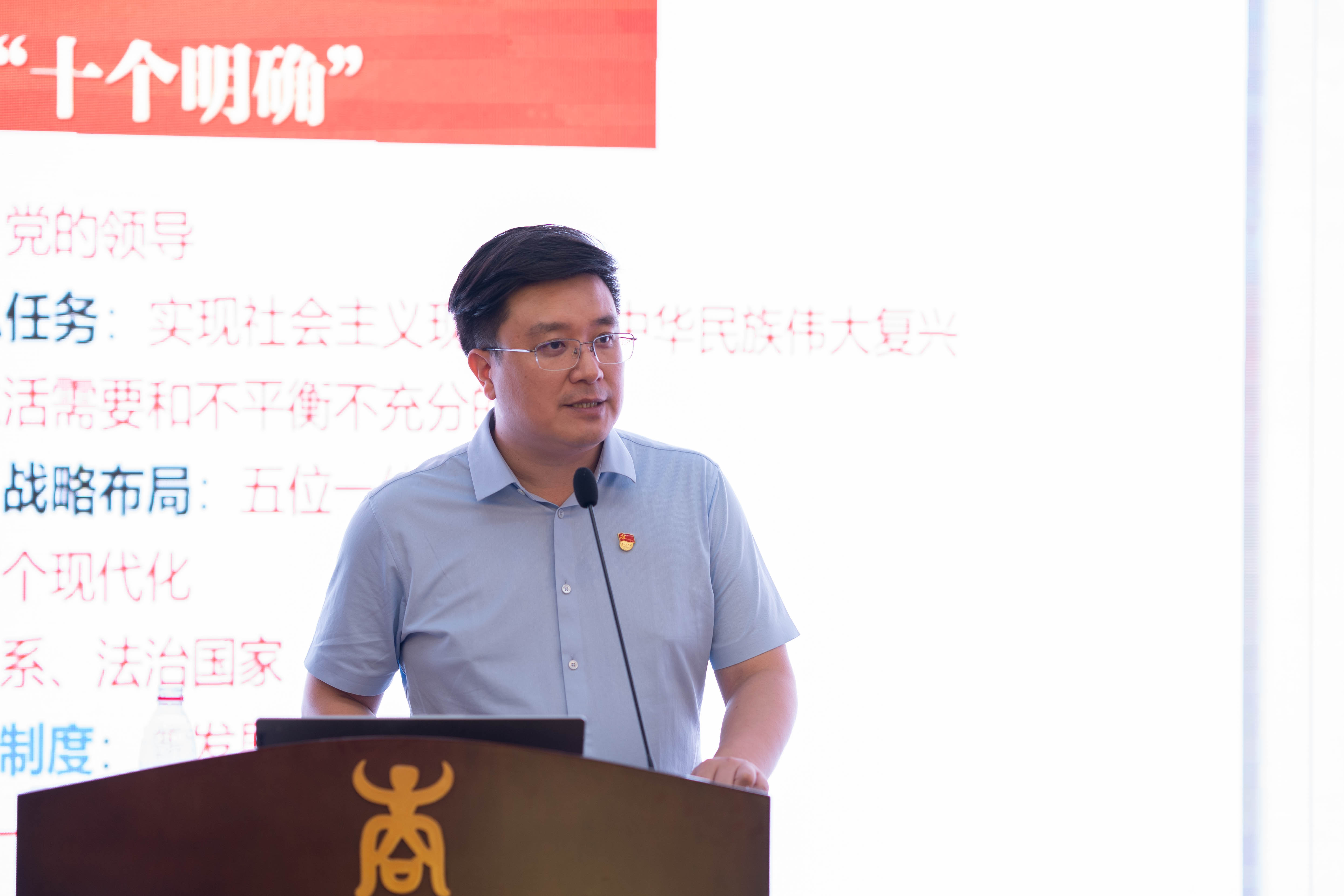 学院党委副书记黄晋以《学习贯彻习近平新时代中国特色社会主义思想,争当中华民族复兴大任的时代新人》为题,在学院128报告厅为研究生第二党支部、本科生第二、第五党支部讲授专题党课。他通过举实例,与同学们互动的方式,带领同学们系统理解了如何牢牢把握主题教育“学思想、强党性、重实践、建新功”的总要求,并勉励大家要“敢想敢为又善作善成”。
