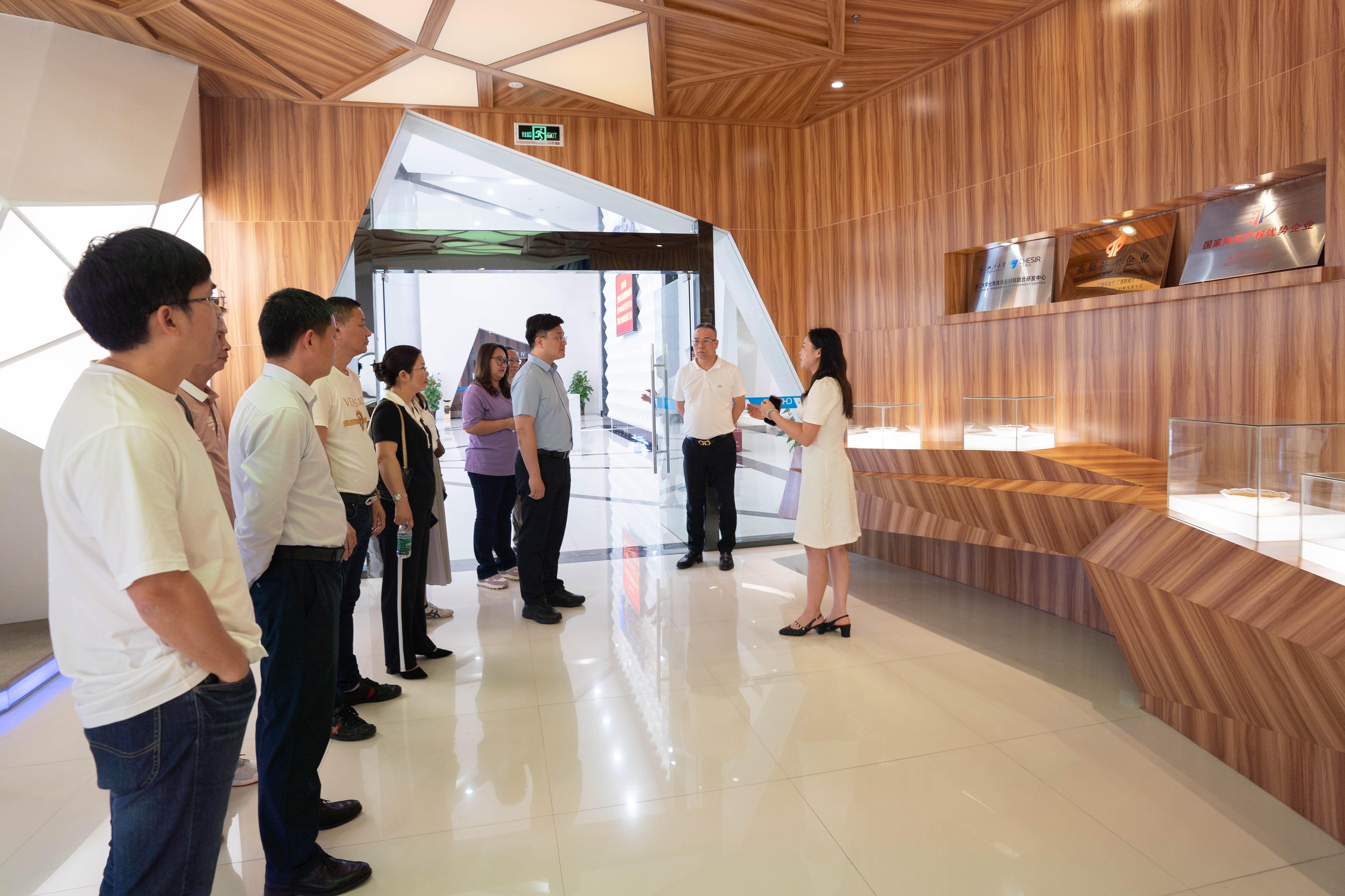 EMBA5班校友金增勤的陪同下参观了产品展示区及文化展厅,详细了解公司科技研发、产品布局、产品性能等情况。