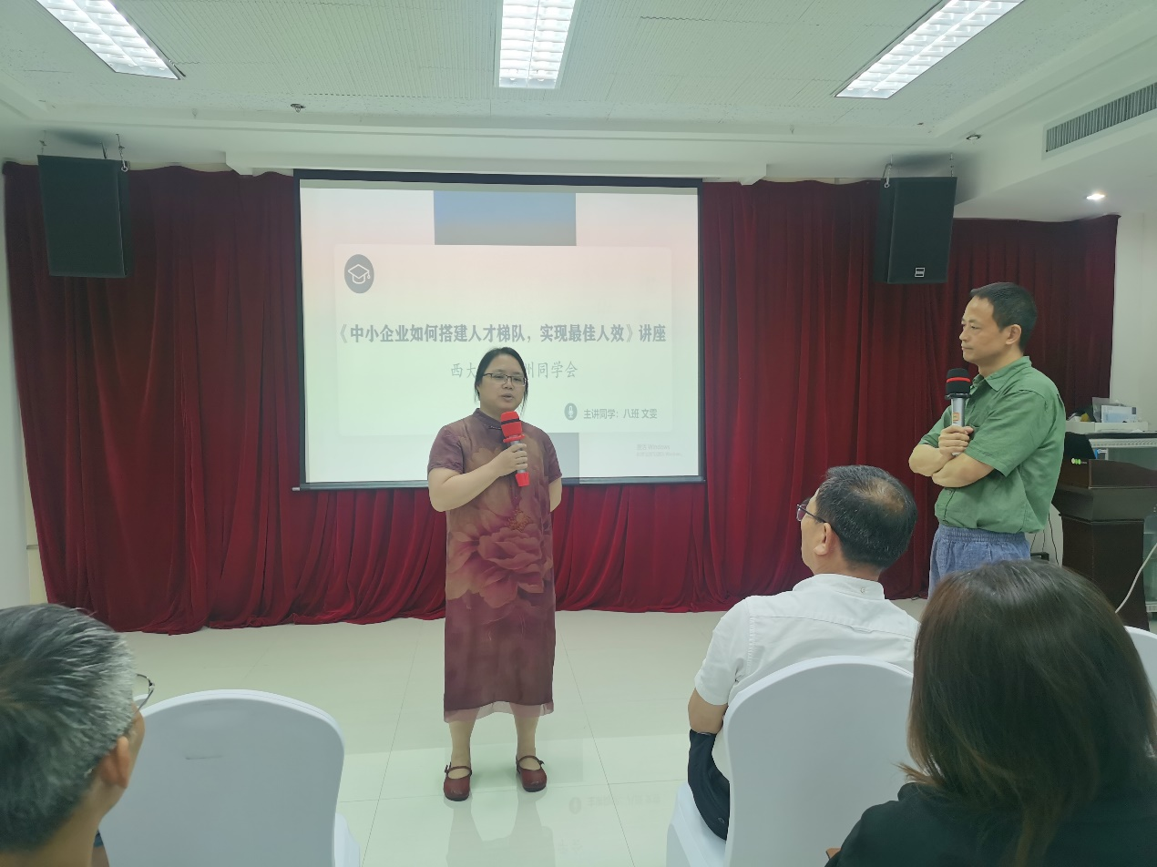 活动期间,朱少英副院长和柳州EMBA校友企业家进行交流,探讨在当前情境下中小企业如何进行人才梯队建设。EMBA柳州校友会的校友们在交流中不仅分享了宝贵的管理经验,还回忆了在母校学习生活的经历。校友们对学院领导前来走访看望表示感谢,对学院取得的各项成绩感到骄傲和自豪,纷纷表示将继续弘扬优良传统,一如既往地关注和支持母校,积极为推进母校和学院高质量发展建言献策。