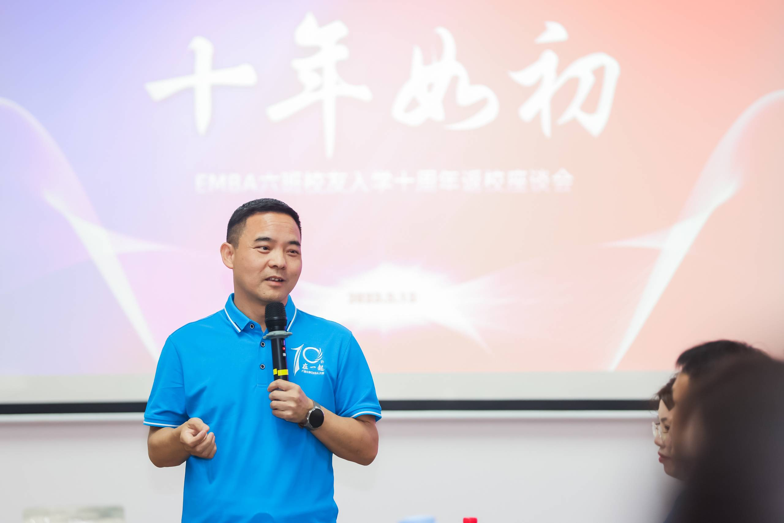 罗诚书记首先代表学院党委、行政对返校的EMBA六班校友们表示了热烈的欢迎和诚挚的问候,并向大家介绍了十年来学院以及EMBA教育的变化与发展,以及在学科建设、教学科研和人才培养等方面取得的佳绩。罗书记强调,母校是校友永远的家园,校友力量是母校建设发展的坚强基石。他希望校友们能一如既往地关心和支持母校,凝心聚力,共同推动学院事业的蓬勃发展,也欢迎校友们常回母校走走,常回学院看看。