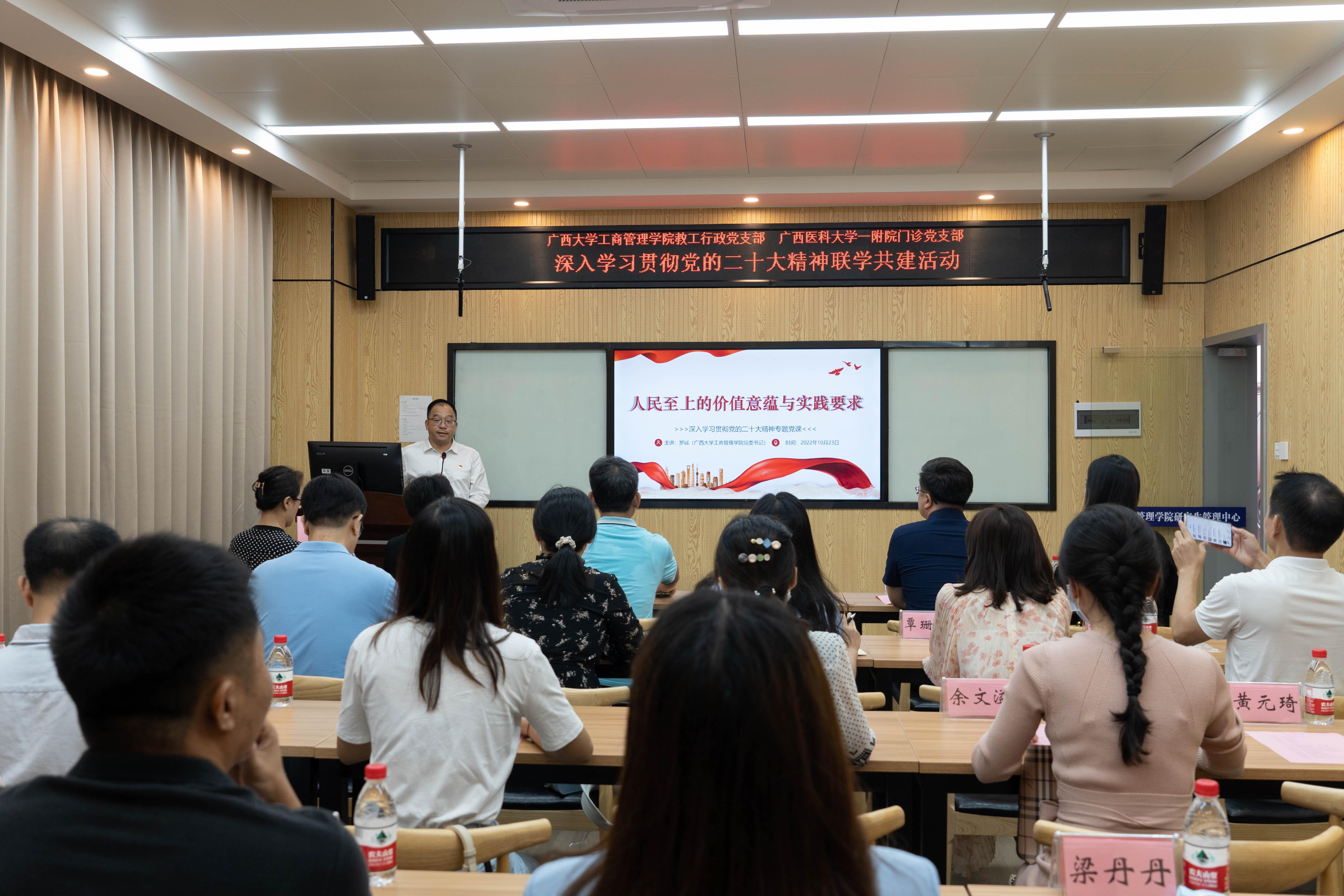 教工行政党支部与广西医科大学一附院门诊党支部联合开展深入学习贯彻党的二十大精神联学共建主题党日活动。学院党委书记罗诚以普通党员身份参加了本次活动。