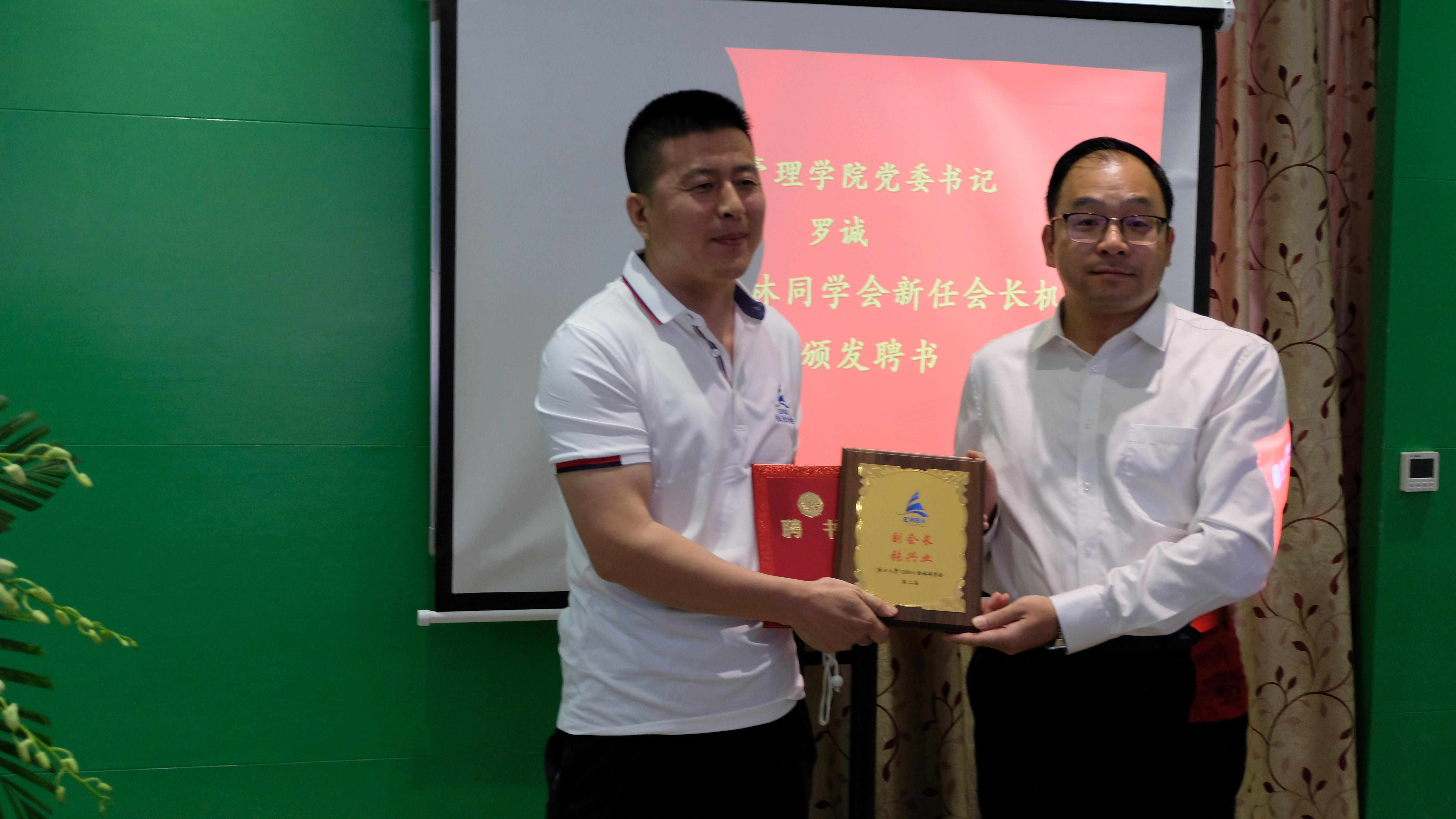 校友工作办公室副主任黄照温老师为秘书长、副秘书长(代领)颁发聘书