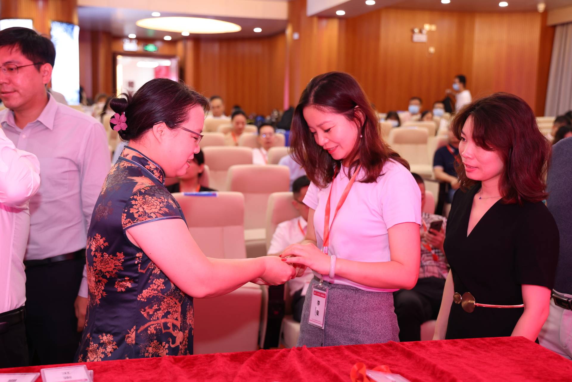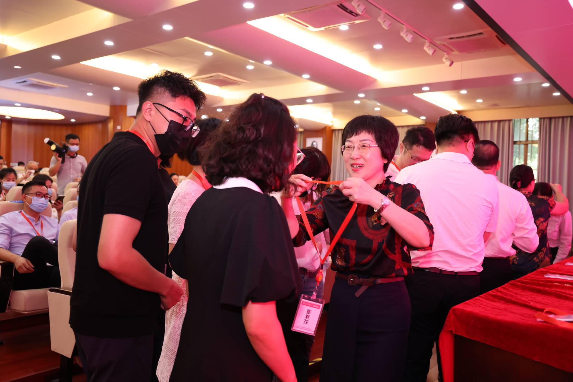 廖东红副院长为EMBA新生佩戴色中色