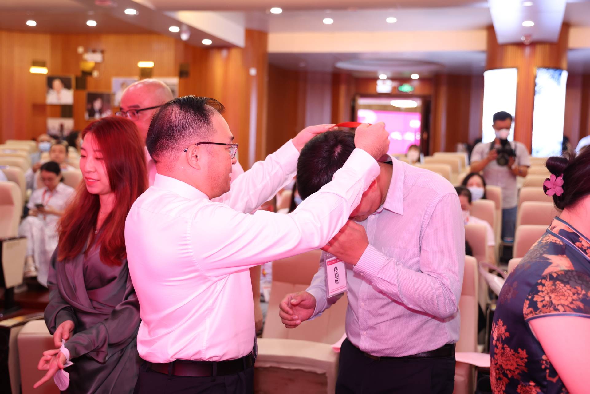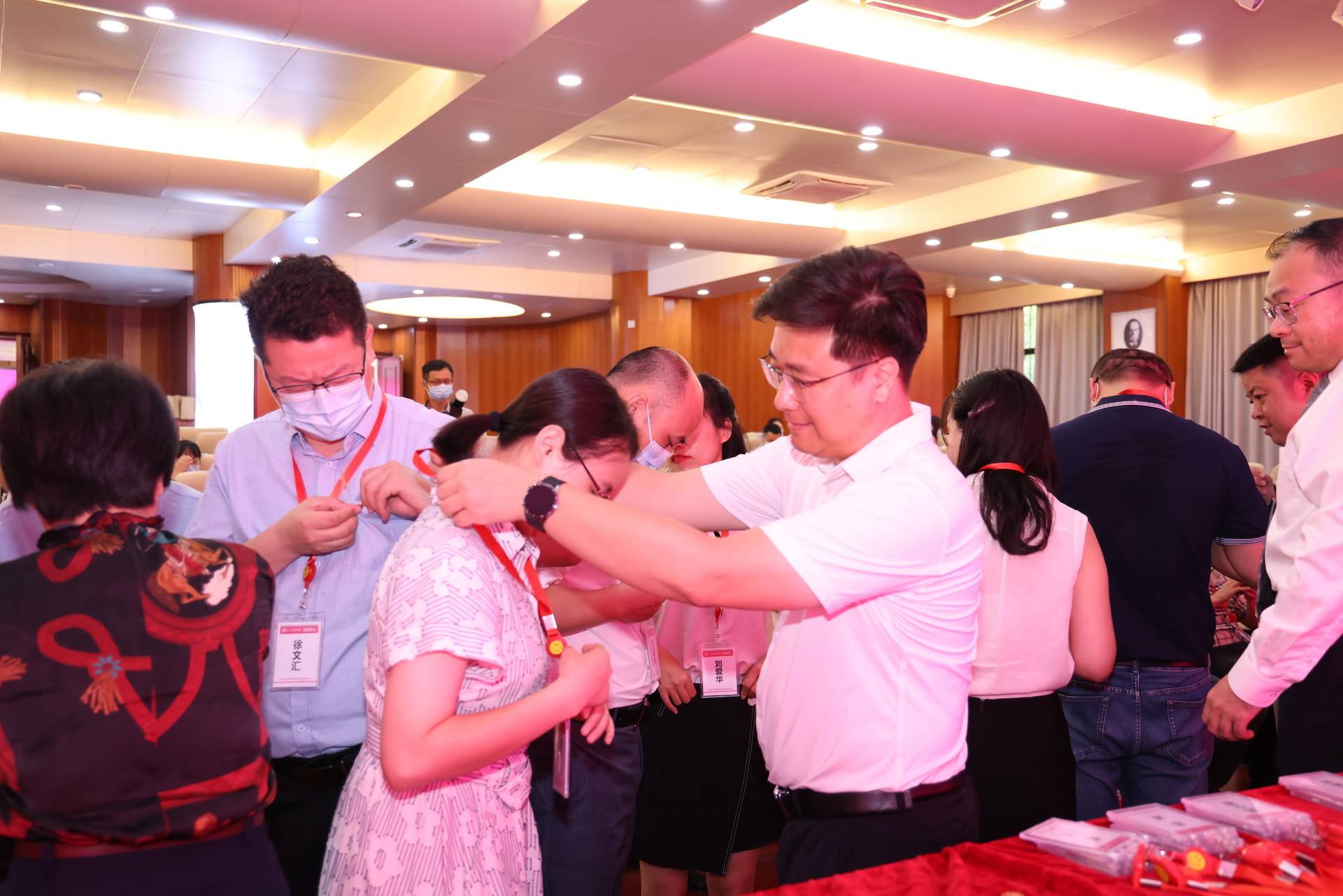 的领导们为各位同学佩戴色中色
