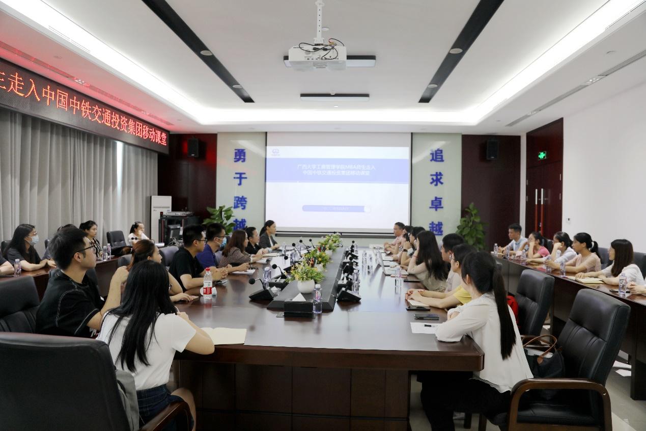 MBA教育中心主任叶映带领2021级MBA人力资源管理方向的同学们一行30余人走出校园,赴中国中铁交通投资集团开展以“央企人力资源管理如何与创新融合”为主题的移动课堂实践活动。