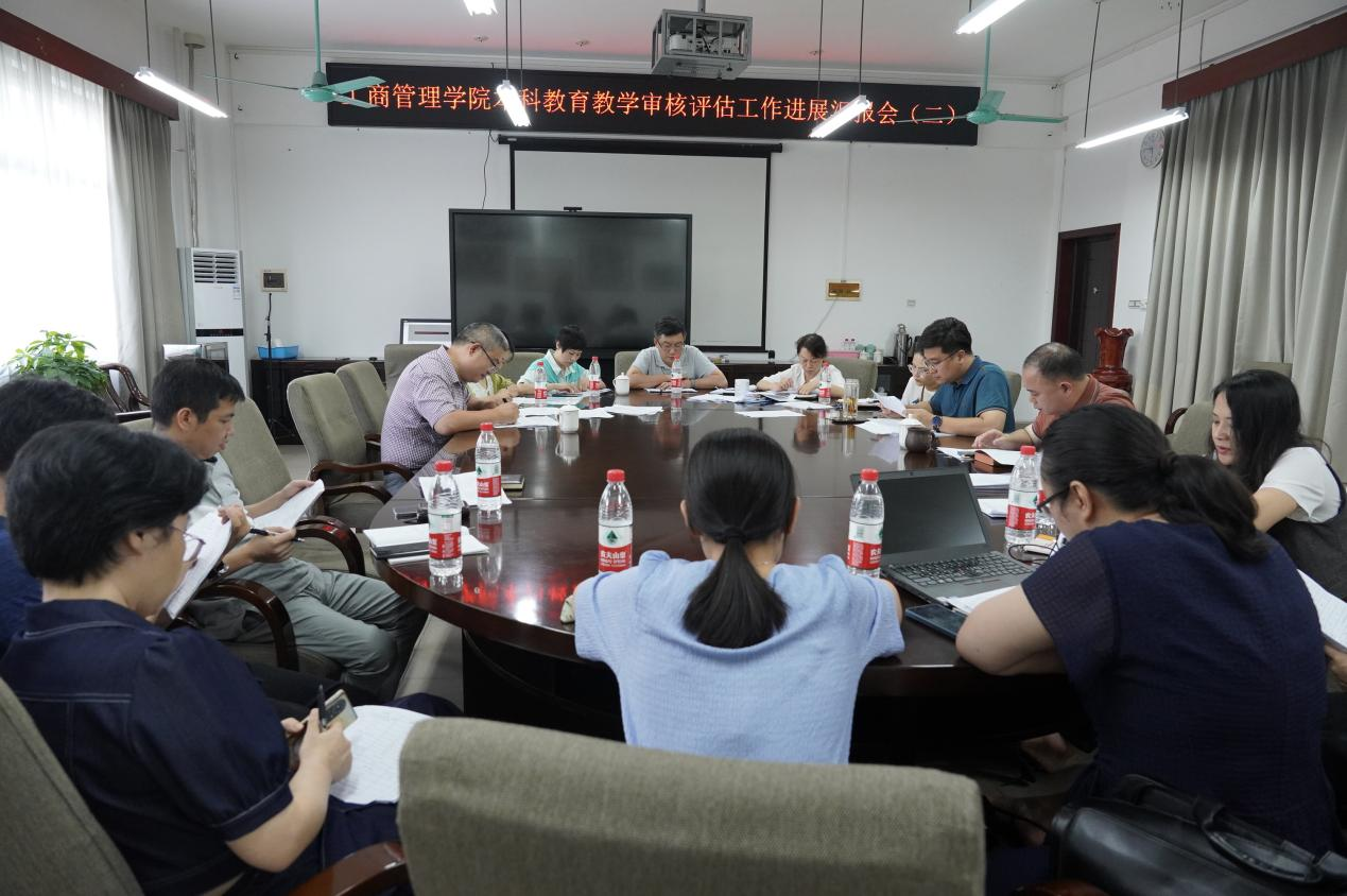 在学院420会议室召开本科教育教学审核评估工作推进会。会议由院长朱帮助主持。院党委副书记黄晋,副院长申韬、刘民坤,以及各系、各部门负责人参会。