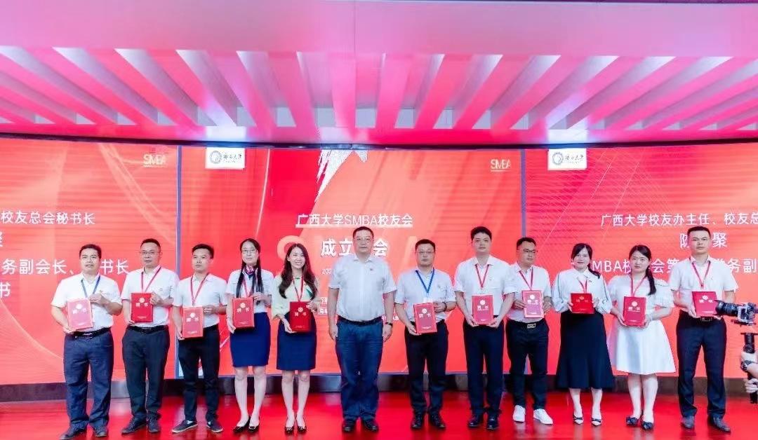 SMBA校友会第一届会长;唐培文当选执行会长;蒋冠平、肖红飞、郑金水等12人当选常务副会长;孙风利(兼)当选秘书长;大会选举王全等25人为副会长;大会选举龙慧娴等5人为副秘书长。学校领导、学院领导分别为第一届会长机构和秘书长机构成员颁发了聘书。