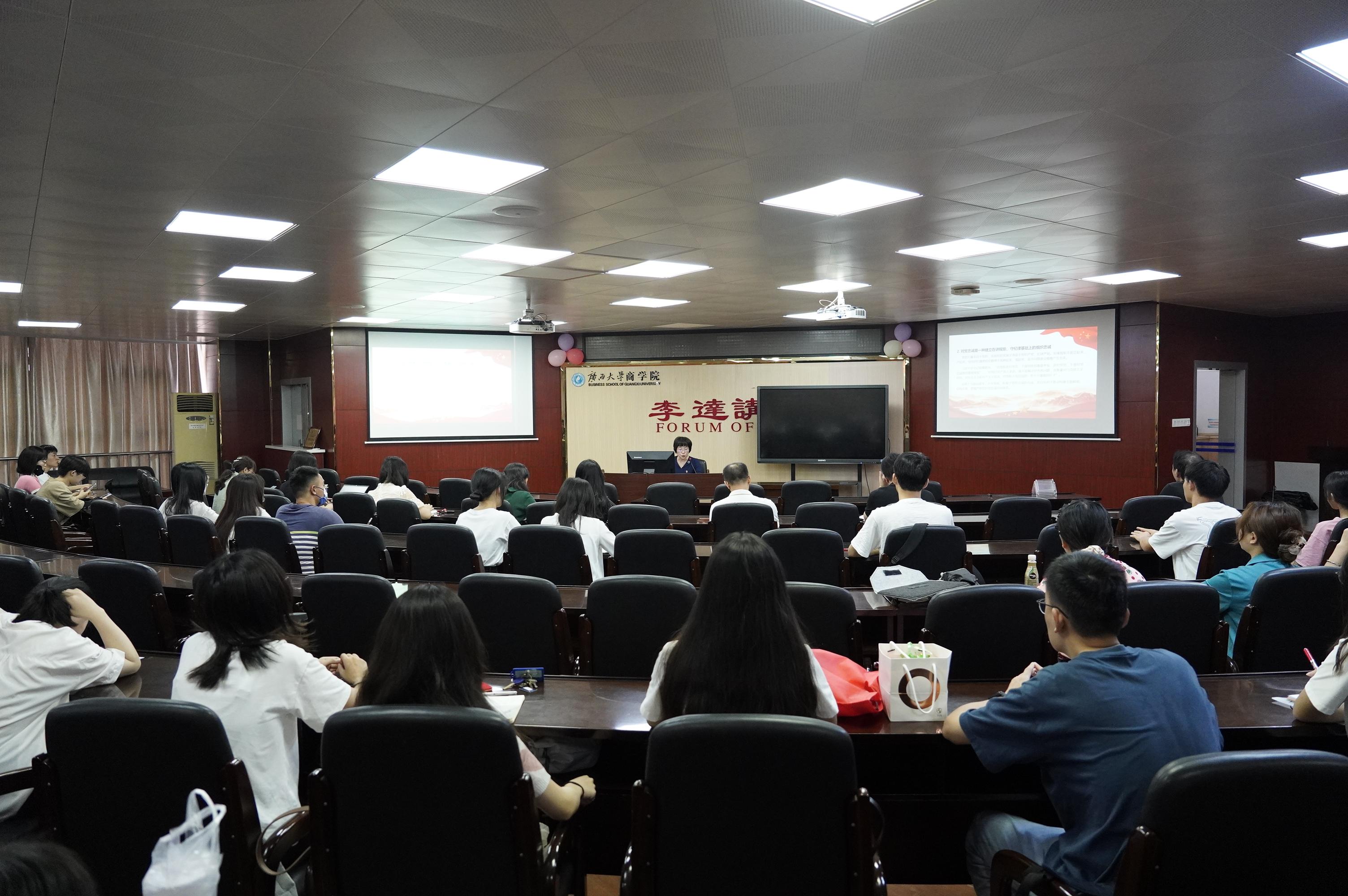 廖东红副院长对教工行政党支部、研究生第一党支部和本科生第四党支部联合开展主题党课教育