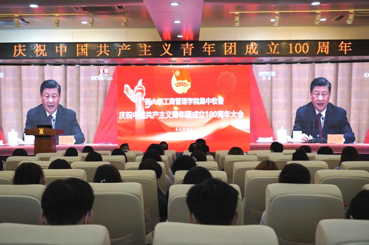 团委组织团员青年、青年团干、学生干部代表集中收看了本次大会实时直播,各班团支部组织团员青年在宿舍收看了大会的实时直播,深入学习习近平总书记重要讲话精神,积极发表心得体会,共同庆祝中国共产主义青年团成立100周年。