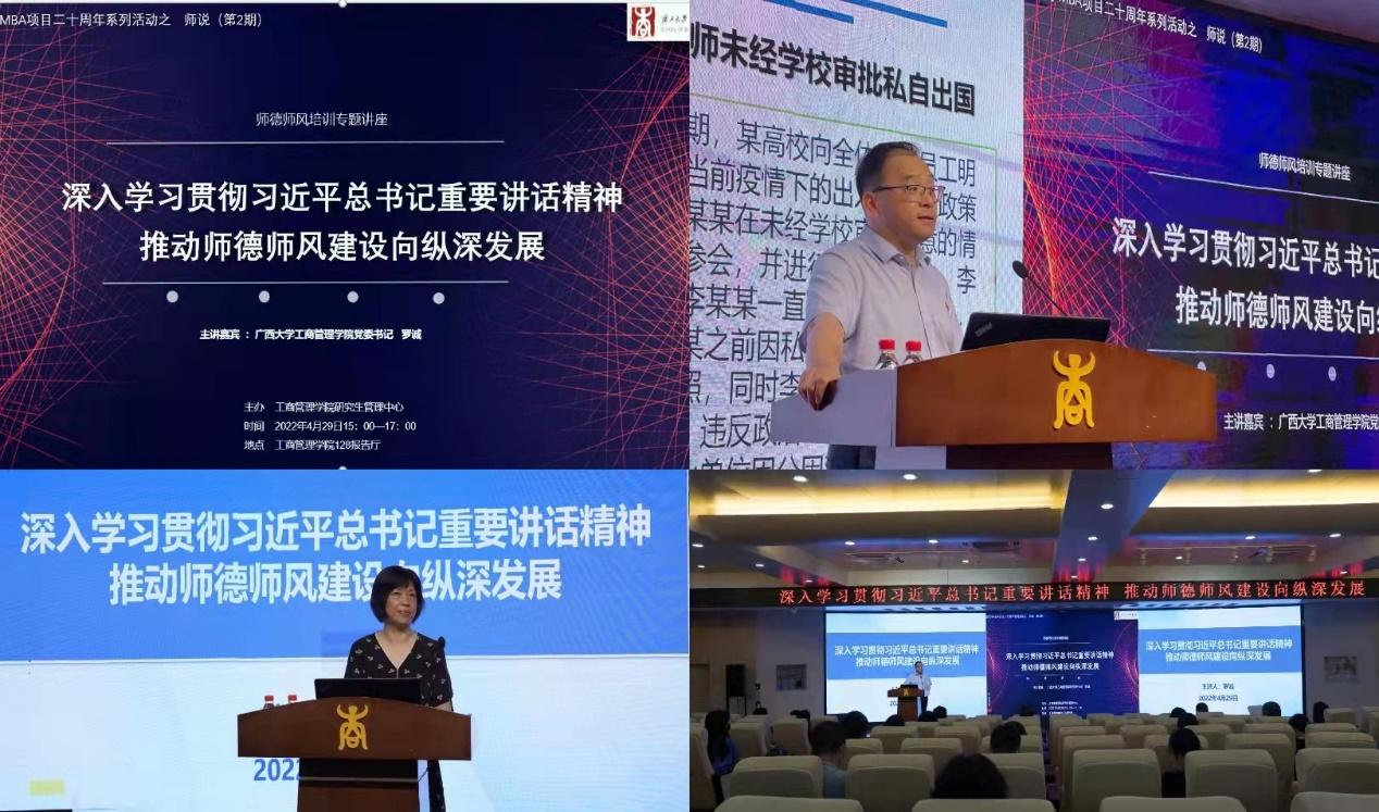 在学院128报告厅举办师德师风培训专题讲座。讲座由学院党委书记罗诚主讲,院党委副书记、院长朱帮助等全体教职员工参会学习,学院研究生管理中心常务副主任叶映副教授主持讲座。