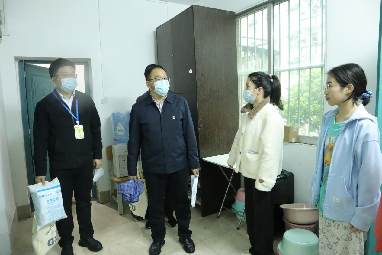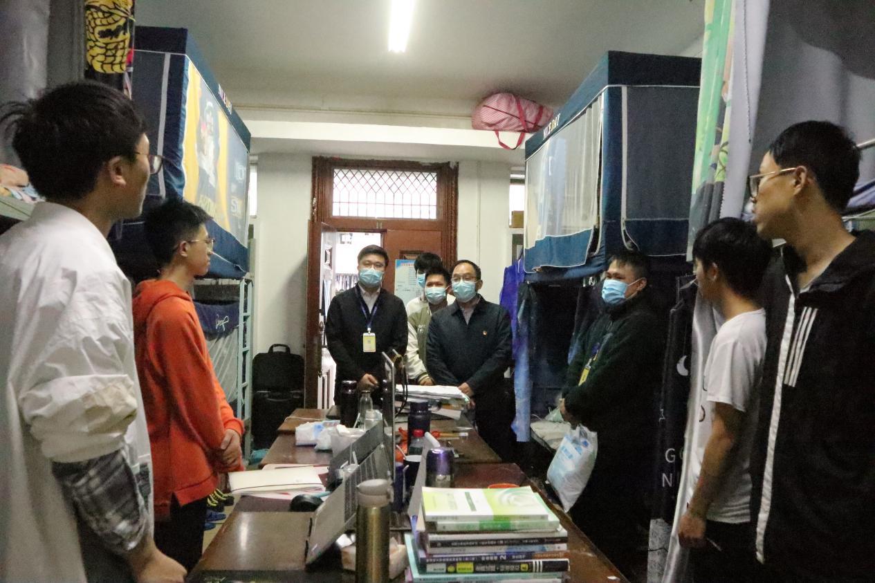党委书记罗诚、党委副书记黄晋分别带领辅导员、主要学生干部走访学院本科生男、女生宿舍及西校园南区研究生宿舍,重点了解色中色