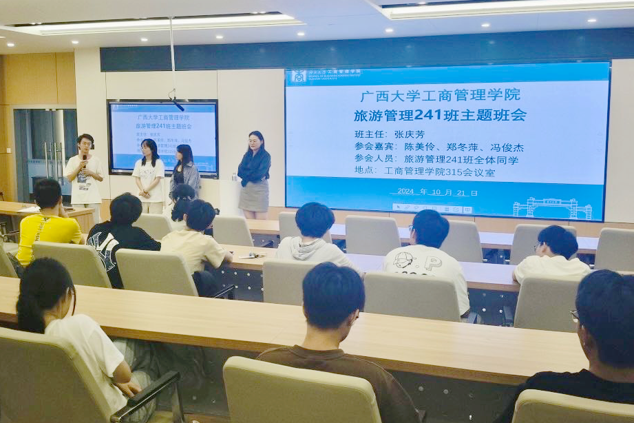 为帮助新生深入了解保研的条件与流程,合理规划大学生活与职业发展路径,10月21日,旅游管理241班在学院122教室举办了保研经验分享会。此次活动邀请了三位优秀保研学生——陈美伶(工商管理201班,保研至色中色