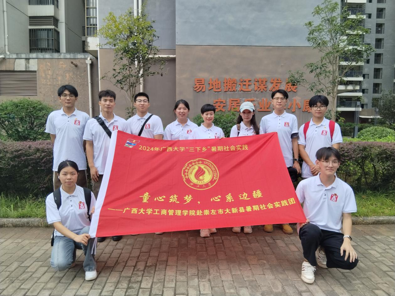 暑期社会实践团带着满满的爱心与责任,走进了大新县易地搬迁扶贫小区——星光和乐城,开展了一场以“童心筑梦,心系边疆”为主题的关爱行动。