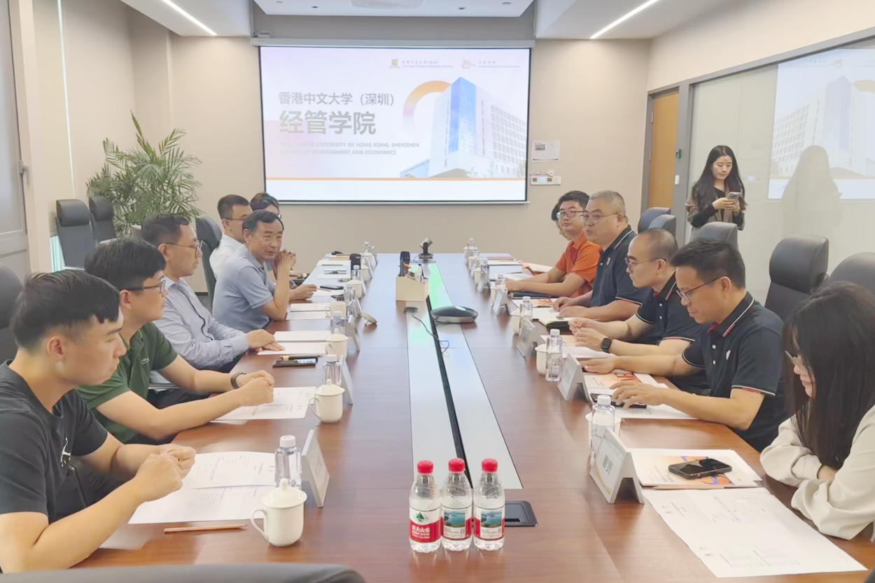 院长朱帮助率会计与财务金融系教师代表一行7人赴香港中文大学(深圳)经管学院(以下简称港中深经管学院)调研。港中深经管学院副院长艾春荣及学院相关领域教授、行政负责人参与座谈。