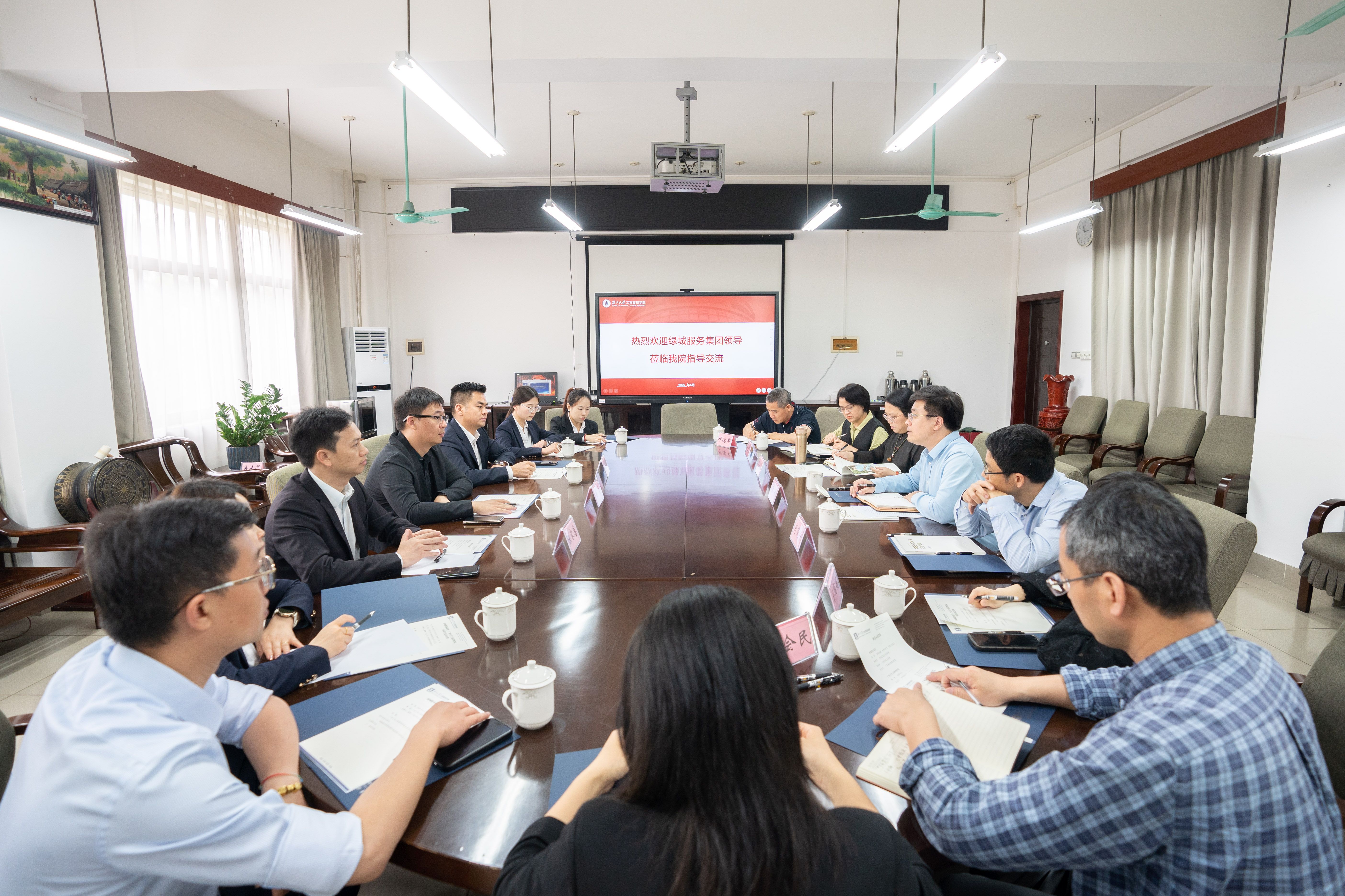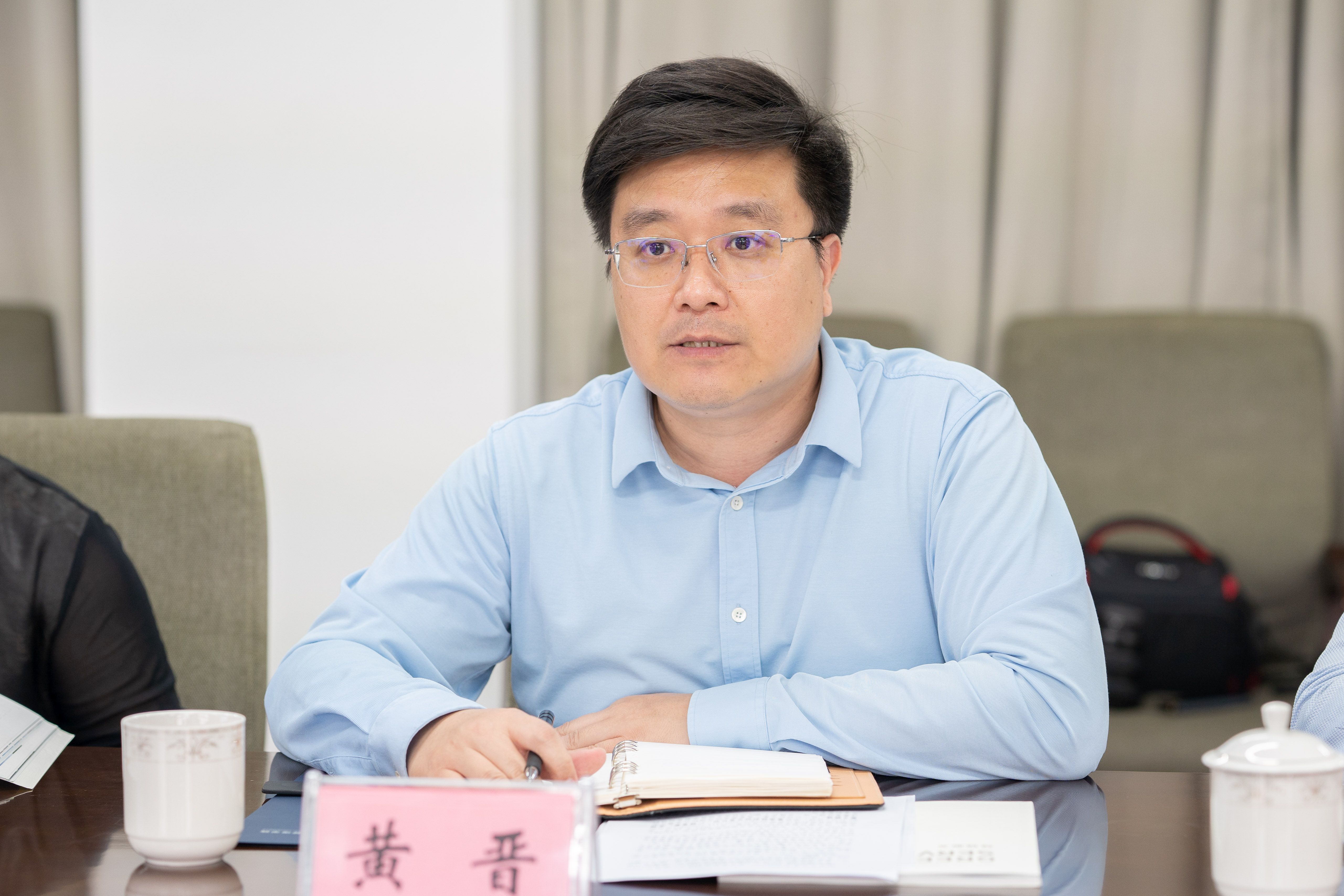 调研交流。学院党委书记黄晋,党委副书记肖克宁、副院长朱少英与来宾在420会议室座谈。