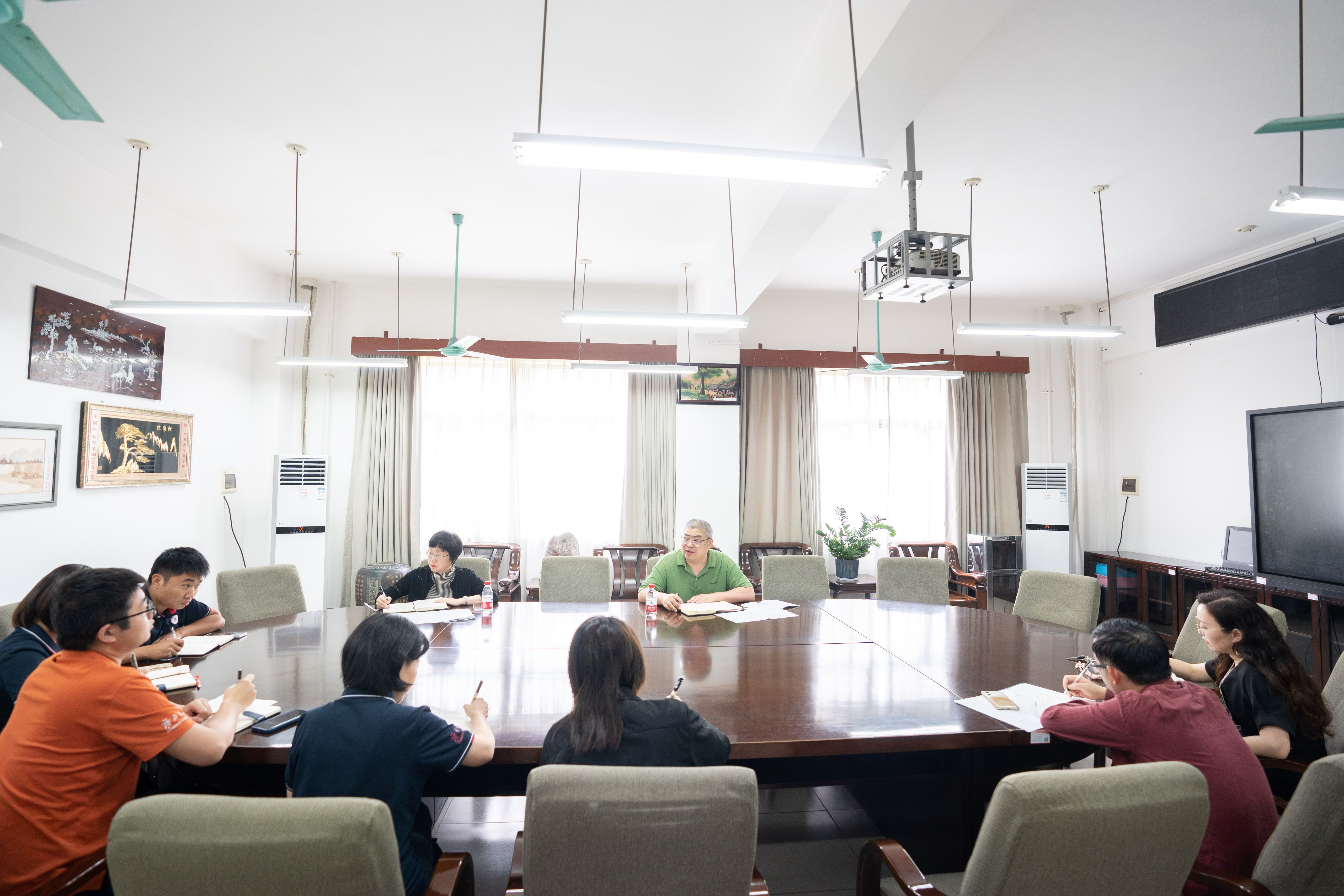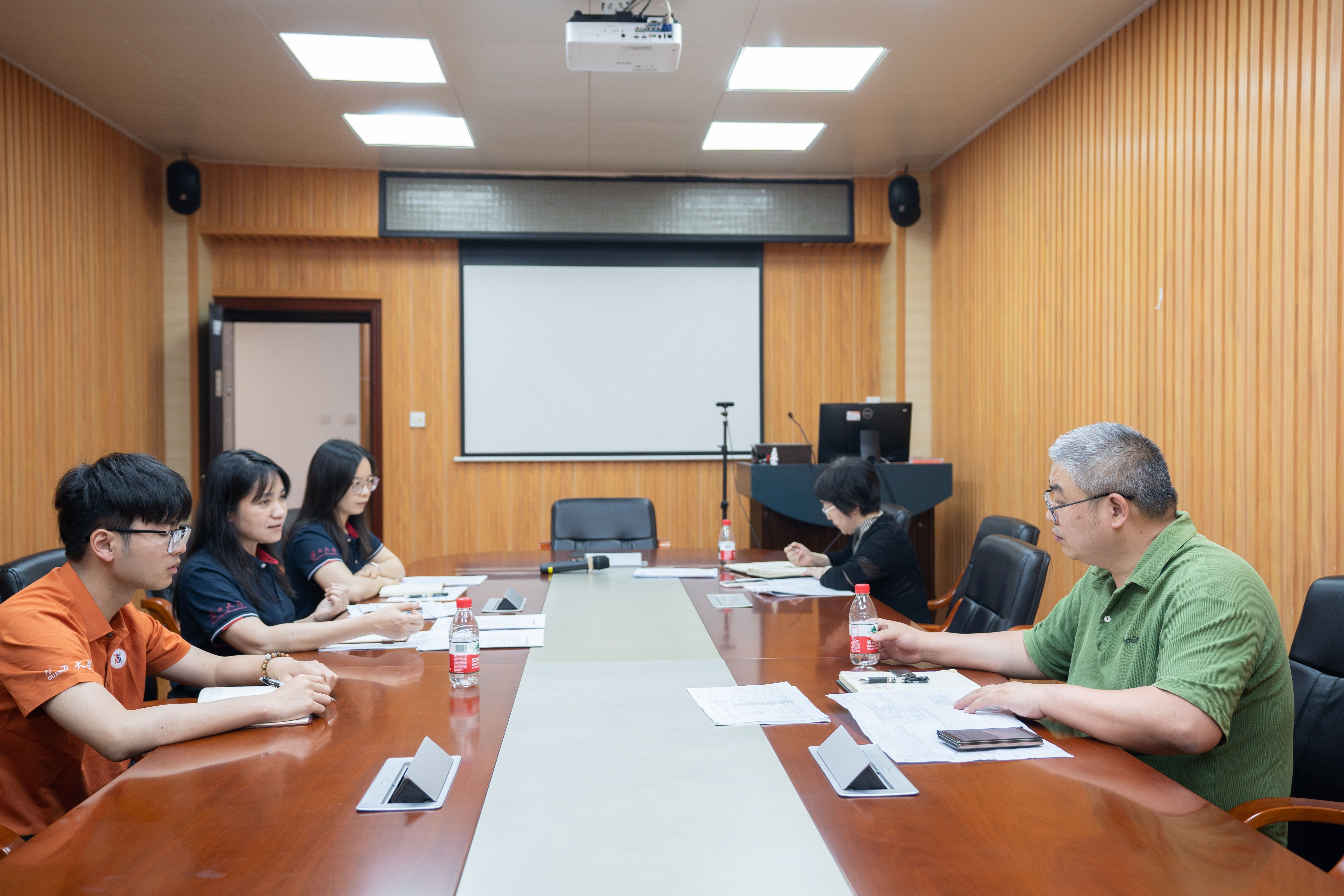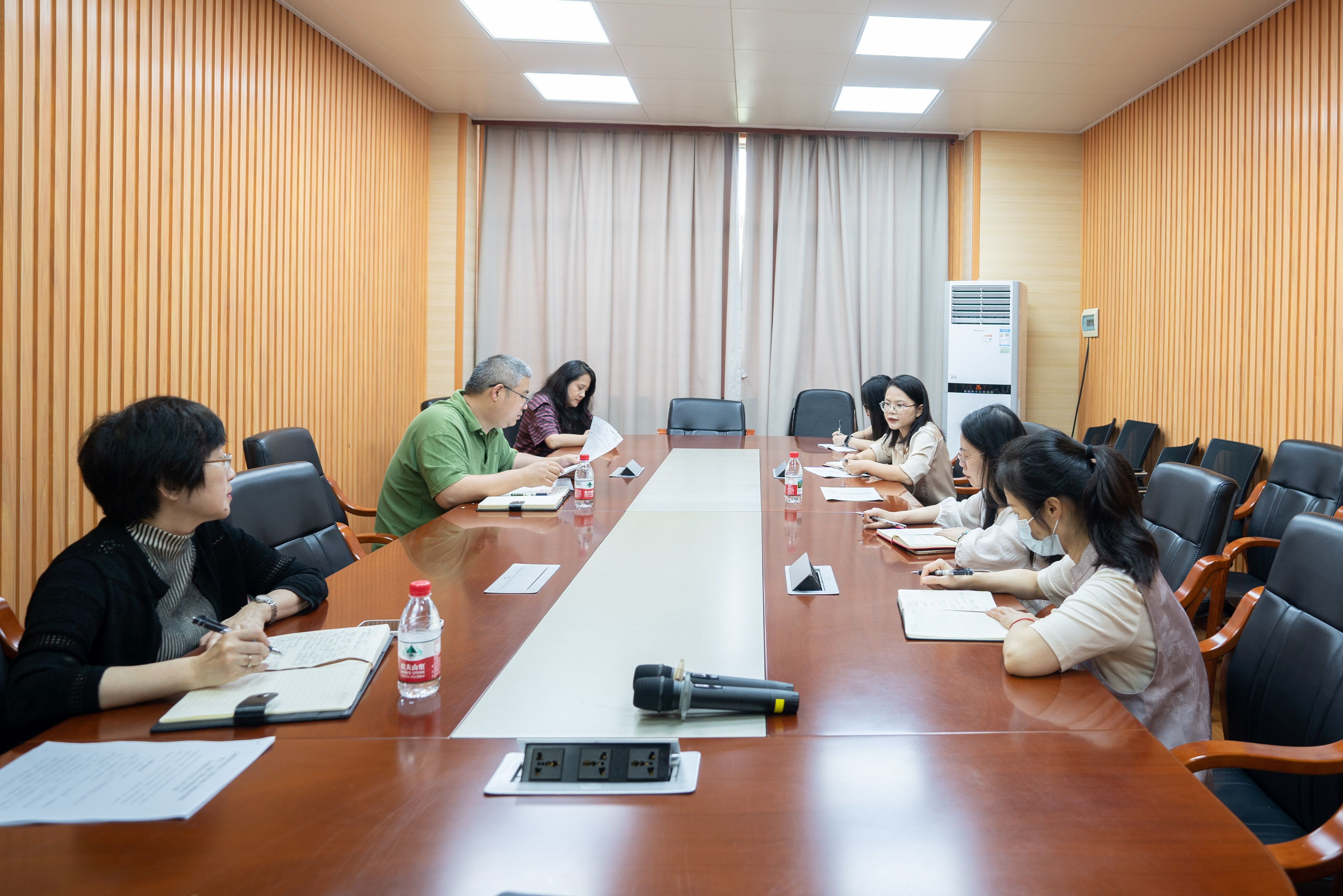 朱帮助、廖东红与学科建设与科研管理办公室、国际交流办公室和认证工作办公室工作人员座谈交流。座谈会上,各部门汇报了日常运行、团队建设及服务保障等方面的情况,并围绕近期重点工作进行了详细汇报。
