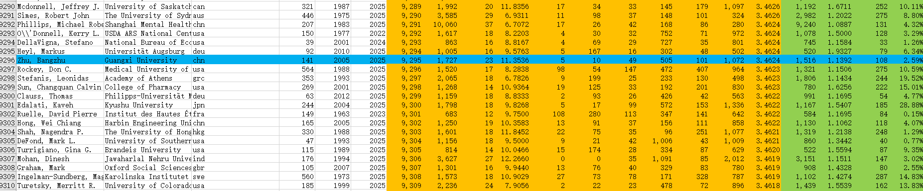 全球前2%顶尖科学家榜单是基于Scopus数据库的引用数据系统分析,使用总引用量(区分自引和他引,提供自引数据)、HirschH-index、共同作者修正的Schreiber Hm-index、单独作者、单独或者第一作者等6个关键因素进行综合评估,从全球近700万名科学家中遴选出世界排名前2%的科学家。榜单分为22个主要领域和174个子领域,通过“生涯影响力”和“年度影响力”两个维度反映科学家的影响力和科研成就,旨在为科学家的长期科研表现提供一个客观且真实的衡量指标。该榜单自发布以来受到学术界的高度关注,被视为全球范围内具有广泛影响力和公信力的权威榜单。