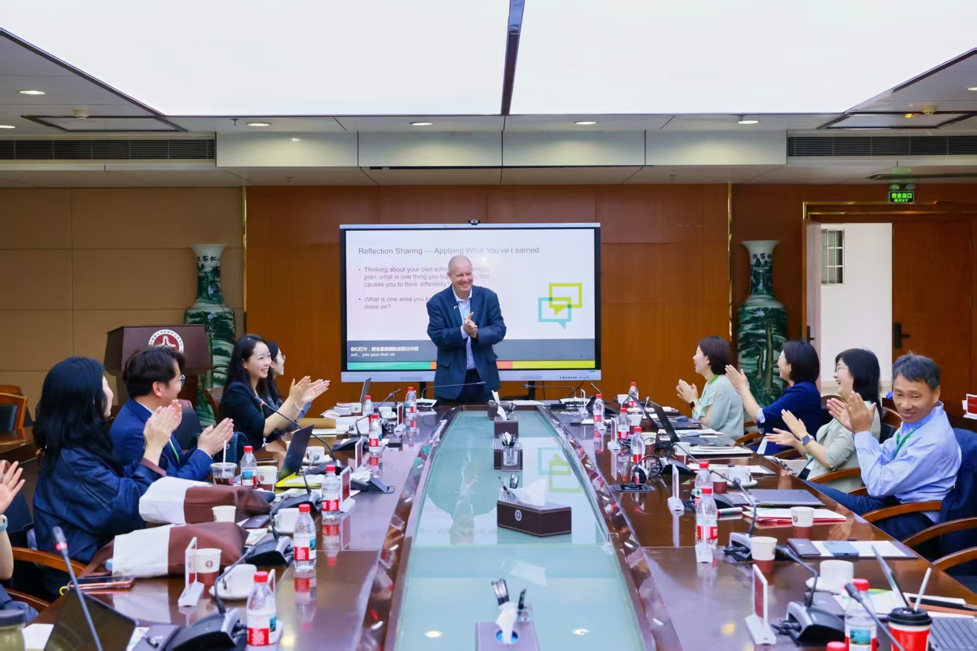教师代表在社会影响力研讨会与Geoff Perry合影