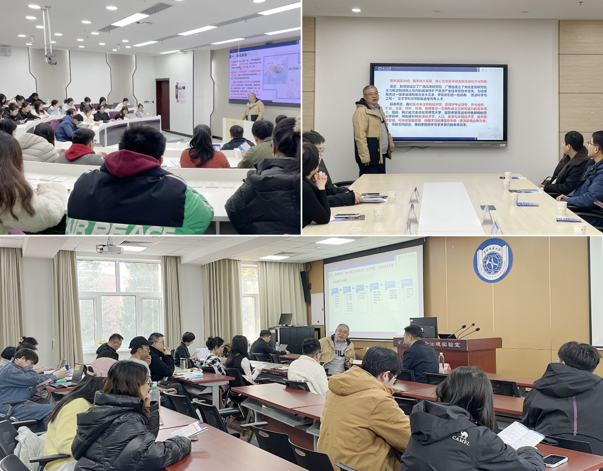 朱帮助在中国地质大学(武汉)经济管理学院(左上)、中国地质大学(武汉)地理与信息学院(右上)、