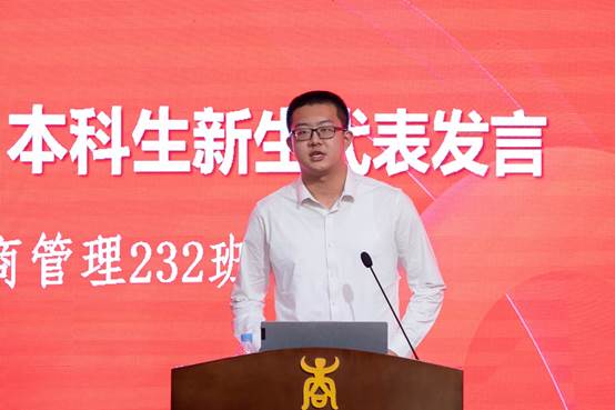 来自工商管理专业232班的姬承代表本科生新生发言。他回顾了这几天来走进色中色