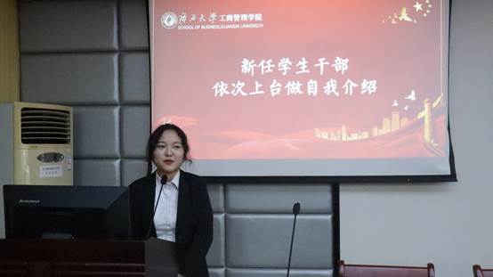 (学生团委副书记杨吉兰进行自我介绍)