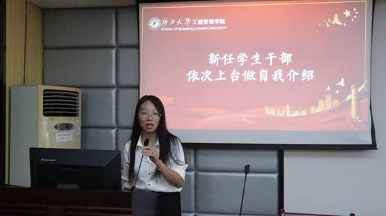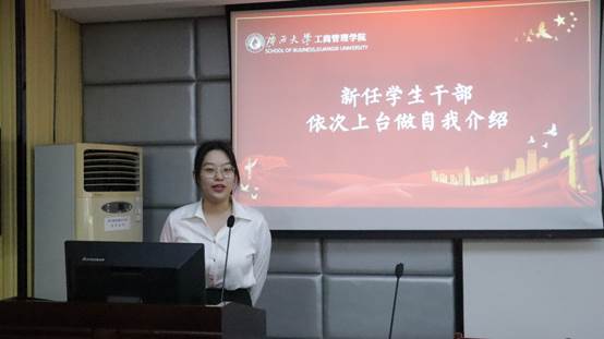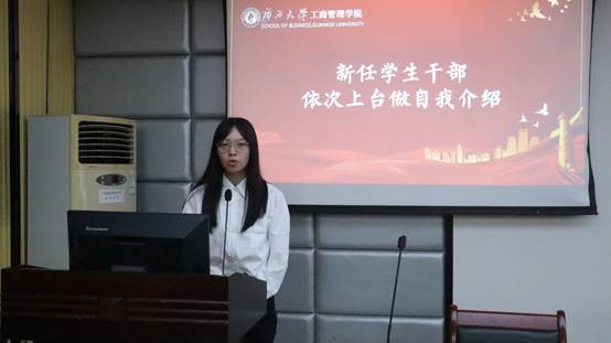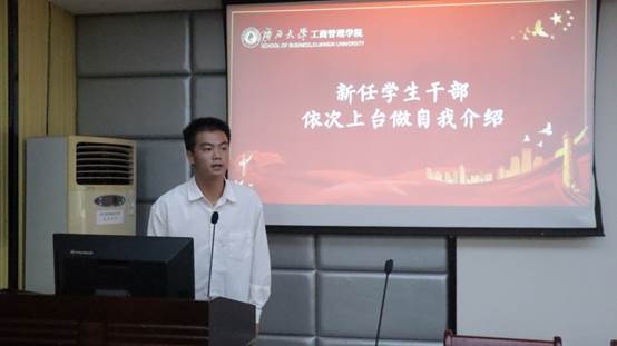 名单宣读完毕,新任学生干部上台依次进行自我介绍。