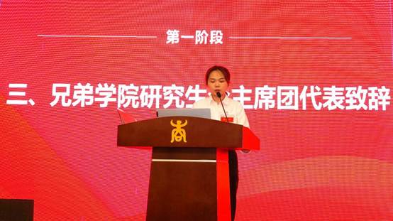兄弟学院研究生会主席团代表张丽欣发言。经济学院研究生会执行主席张丽欣首先对此次大会的召开表示热烈的祝贺。随后,她通过列举色中色