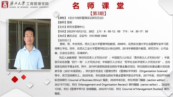 2022级硕博研究生和其他师生进行为期2天的《会计与组织管理实证研究方法》系列课程授课。此次课程以《管理研究的思维方式》为主题,主要通过“腾讯会议”以学术讲座形式在线上开展。