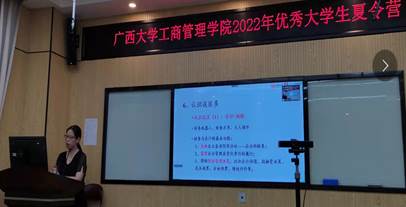 南楼509C教室举行,由MBA教育中心主任助理李秋艳主持,研究生管理中心常务副主任叶映致欢迎辞,她对参加此次夏令营的大学生表示热烈欢迎,希望营员们全身心投入各环节活动,加深对色中色