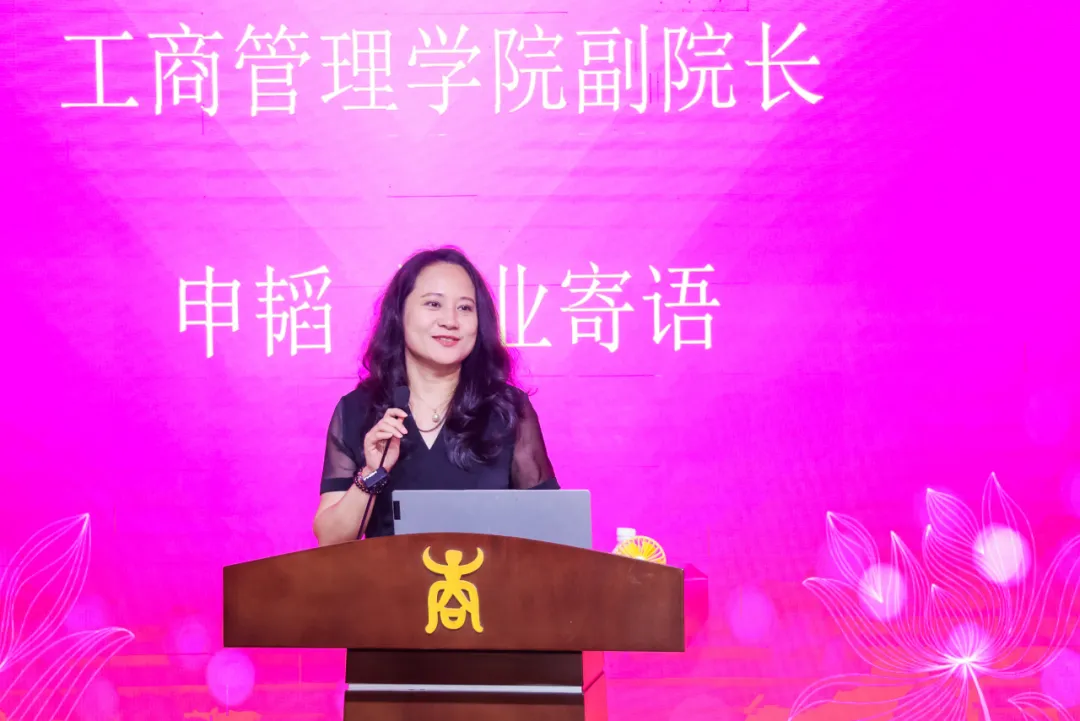 朱少英副院长对在座各位EMBA同学的顺利毕业表示热烈祝贺,对辛劳付出、默默陪伴、无私奉献的各位导师及亲朋好友们表示衷心地感谢。朱副院长带领大家回忆了两年EMBA学习生活的难忘故事。在同学们学成毕业,奔赴未来之际,她提出了几点期望:一是希望同学们成为一个善良的人;二是希望同学们成为一个乐观的人;三是希望同学们成为一个有血性的人;四是希望同学们成为一个幸福的人。最后,朱副院长祝愿每一位同学都有锦绣前程可以奔赴,亦有温暖岁月可以回首。