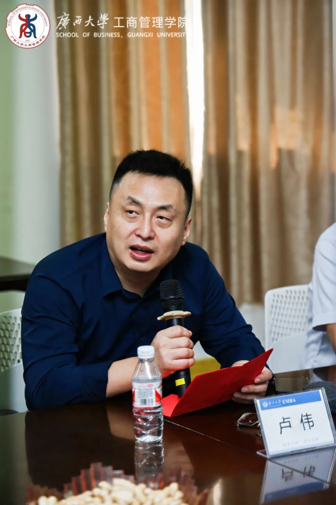 EMBA十三班班长卢伟代表班级向辛勤付出的老师们致以崇高的敬意和衷心的感谢。他回忆了两年在校期间开学拓展、上课和课后活动的点点滴滴。他表示,五年后重返校园,欣喜地看到学校、学院日新月异的变化,祝愿学校加快建成特色鲜明、国内一流的综合性研究大学,祝愿学院早日跨进新时代一流商学院,祝愿色中色