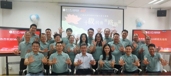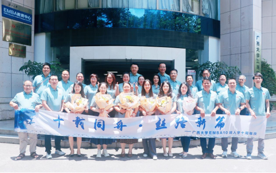 516 教室洋溢着浓浓的情谊与欢声笑语,EMBA10 班 “入学十周年” 返校座谈会在此温馨举行。学院副院长朱少英、校友工作与政企服务办公室主任覃朝勇等教师代表,与近 30 位 EMBA10 班校友齐聚一堂,共同回首往昔同窗岁月,展望未来发展蓝图。