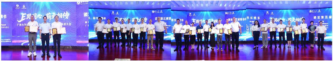 党委书记黄晋、院长朱帮助共同为第五届副会长及秘书长陈轲授聘;学院副院长申韬、廖东红、韦铁为第五届副秘书长颁发聘书。每一份聘书都承载着信任与期待,现场掌声此起彼伏,见证新一届机构的正式启航。