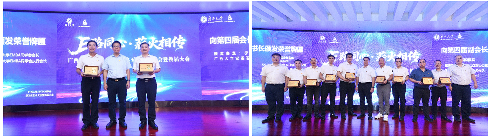 △为第四届同学会机构成员颁发荣誉牌匾