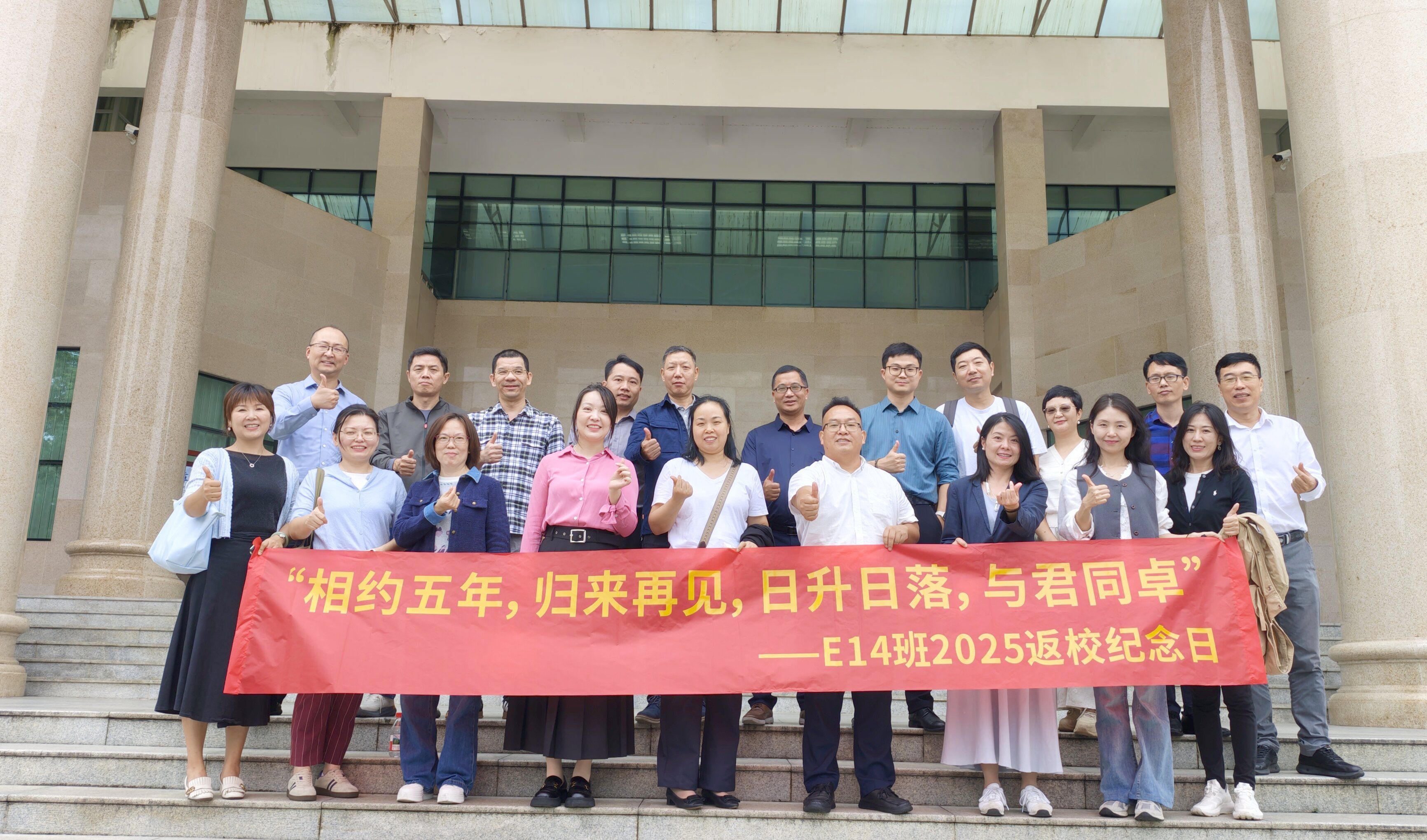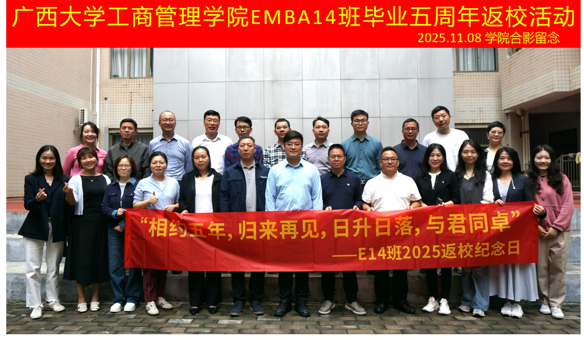 迎来了一批特殊的“家人”—EMBA14班的校友们,在毕业五周年的重要时刻重返母校,共赴一场“重温同窗谊,再启新篇章”的温情聚会。二十余位校友跨越山海,从全国各地奔赴而来,相聚学院500教室,在熟悉的校园中追忆往昔,畅谈当下,共绘未来蓝图。