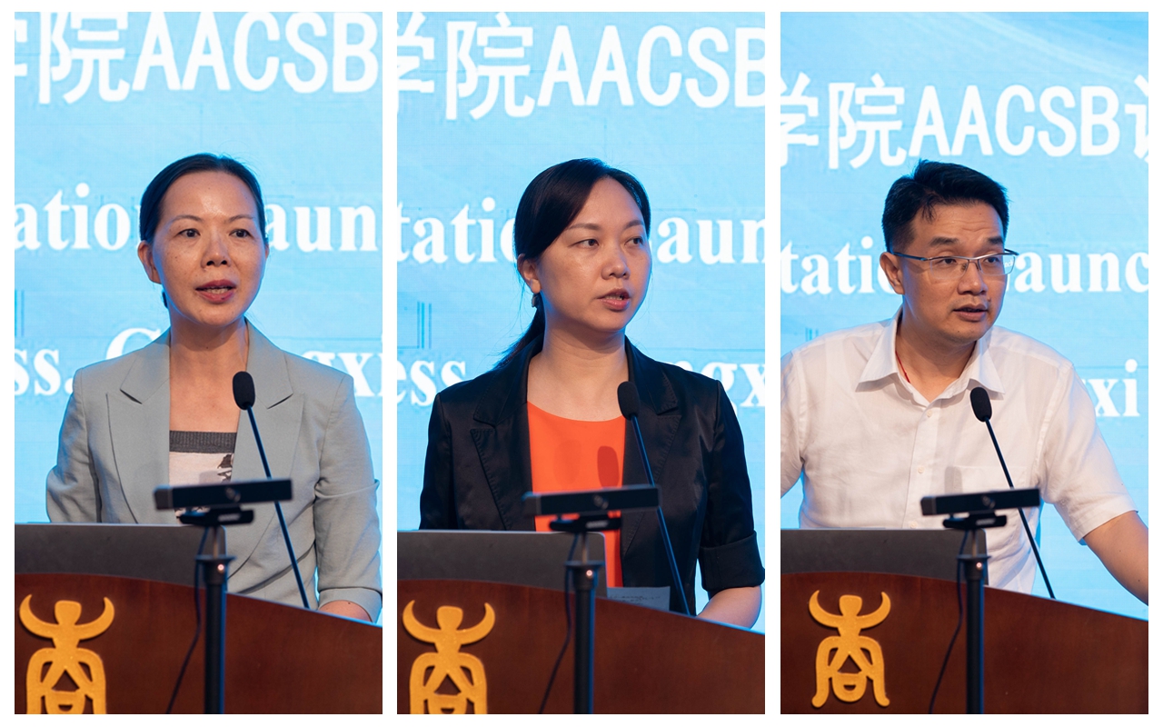 刘小玲院长、梁微主任、彭林欣副处长在讲话中充分肯定了开展AACSB认证对学校发展的重要意义,并分别表达了部门对色中色