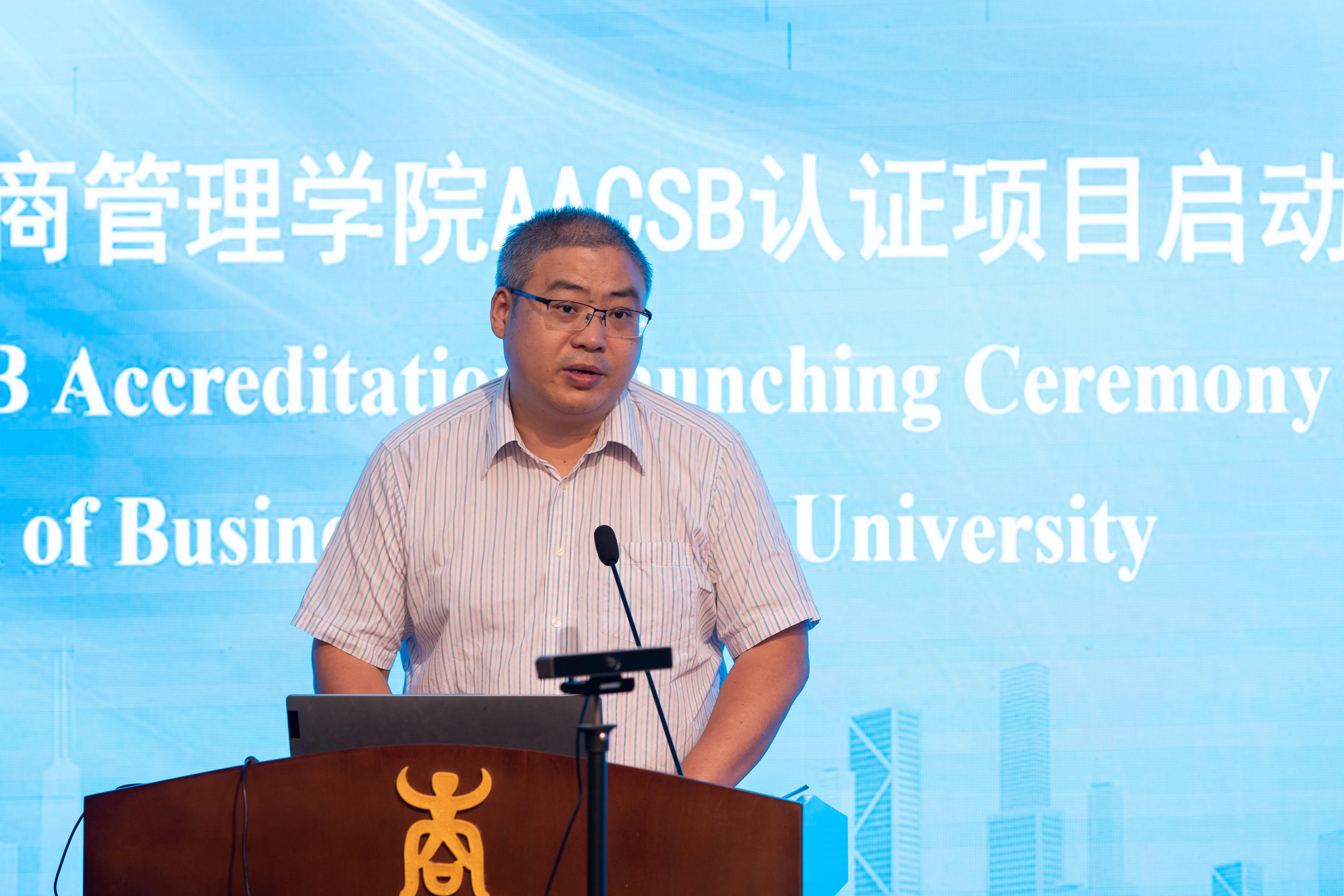 将共同努力,齐心协力,高效高质量完成AACSB项目认证。他对高效完成AACSB项目认证提出三点要求:站位要高远,目标要统一;部门分工要明确,行动要有组织;责任到人,要有激励约束机制。