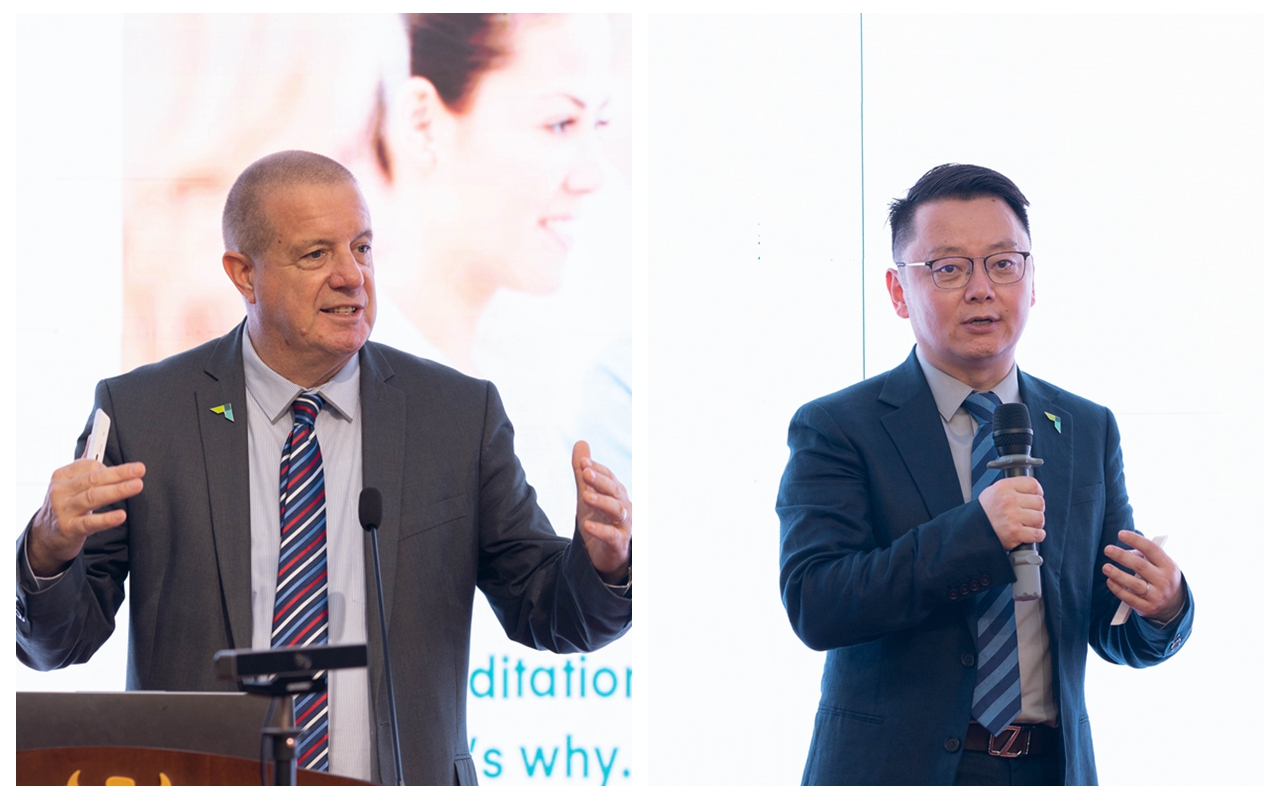 AACSB执行副总裁Geoff Perry和东亚区负责人徐国栋就对标国际标准,推进有特色的国际化商学院建设作了精彩详尽的解读。