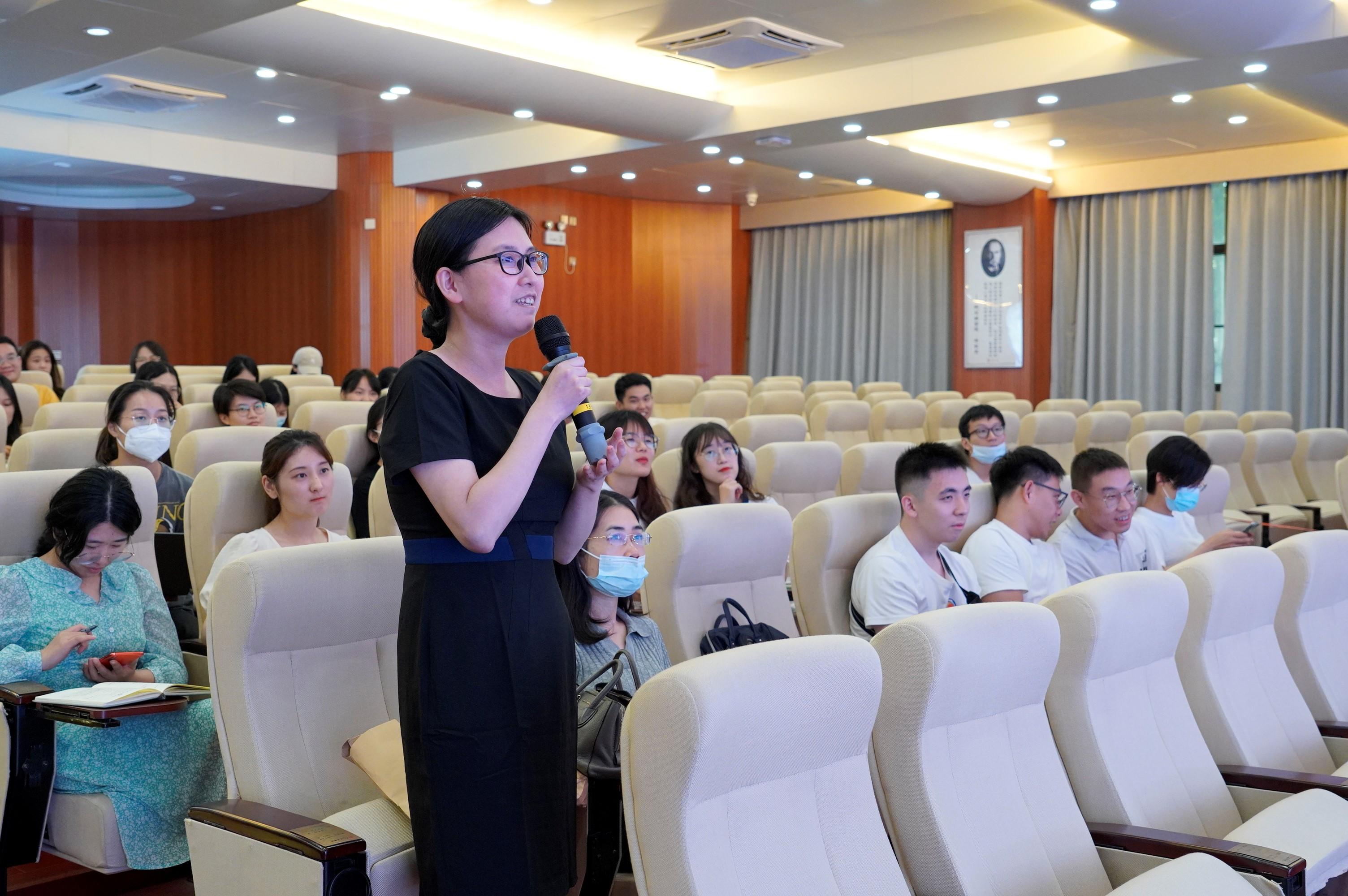 院长朱帮助教授主持,学院全体专任教师以及部分博士生、硕士生到场聆听和学习交流。