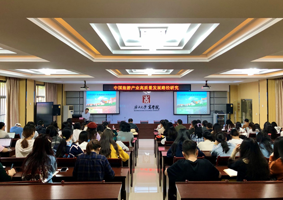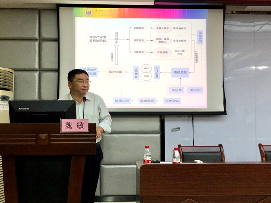 进行学术交流。上午10点,魏敏教授在商学院124报告厅进行了主题为“中国旅游产业高质量发展路径研究”的学术报告。报告由商学院副院长刘民坤教授主持。