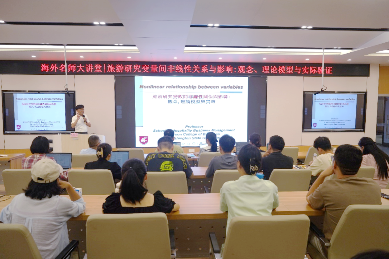 海外名师大讲堂,以“旅游研究变量间非线性和不对称关系与影响:观念,理论模型与实证”为题在学院122报告厅为色中色