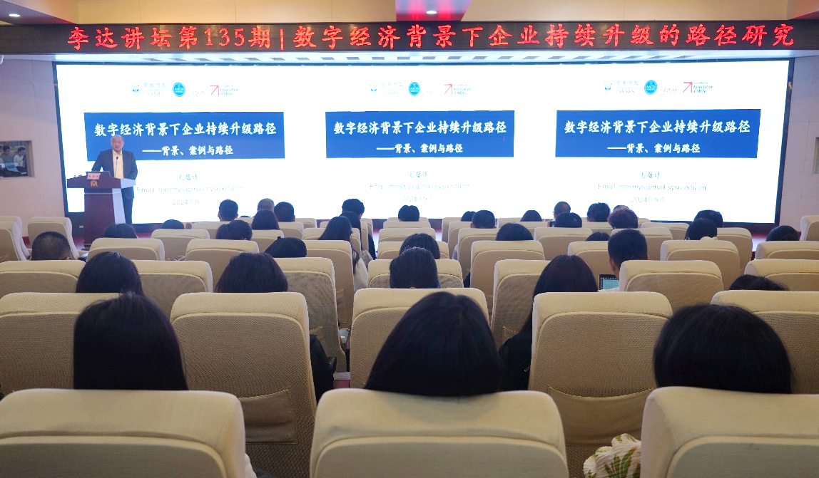 第135期“李达讲坛”,在128报告厅为师生们带来题为“数字经济背景下企业持续升级路径”的学术报告。本次讲坛由学院院长朱帮助主持,学院全体新轨专任教师和相关方向的教师以及部分博士生、硕士生参加学习交流。
